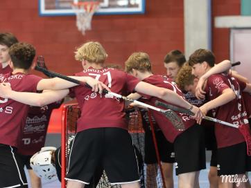 Latvijas IV Olimpiādes florbola finālā triumfēja Kocēnu novada vīriešu izlase, kas pēcspēles metienos ar 4:3 p...