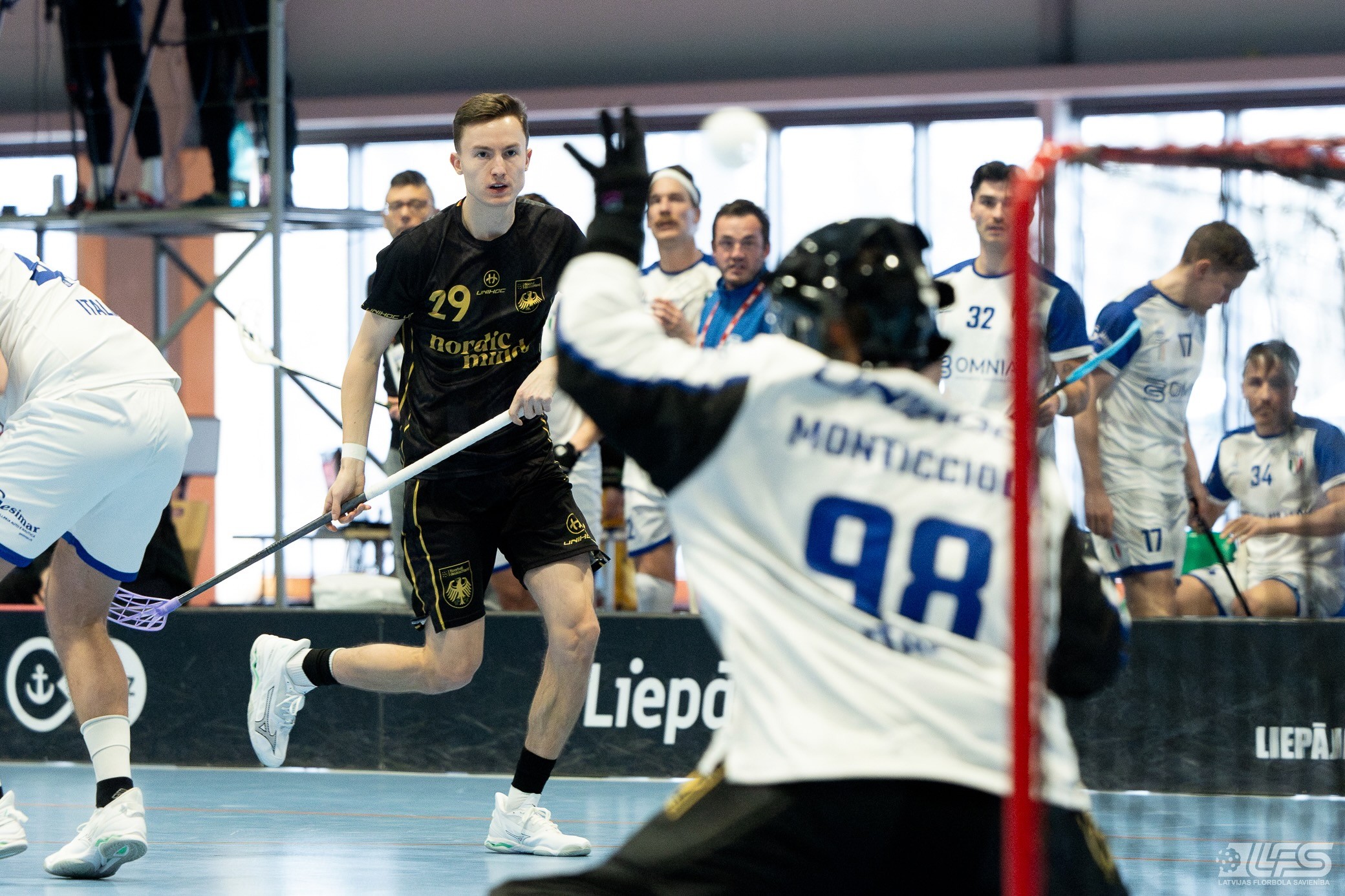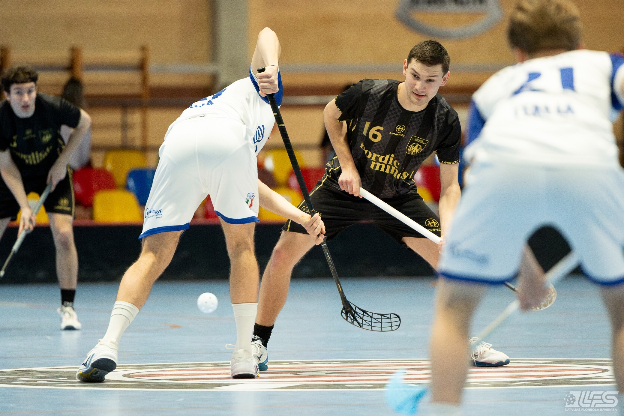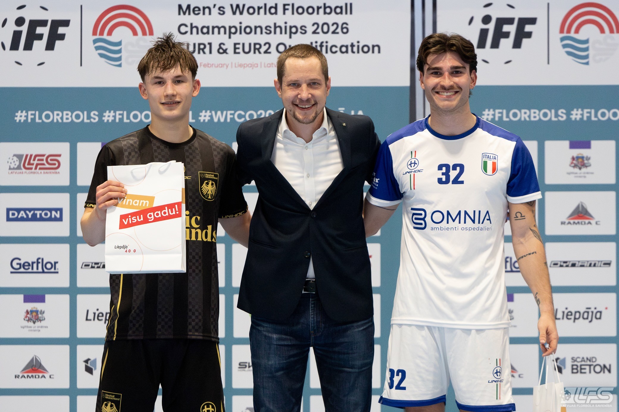 Šodien Liepājas Olimpiskā centra manēžā sākās 2026. gada pasaules čempionāta florbolā vīriešiem EUR 2 kvalifikācijas turnīrs. Pirmajā mačā Vācijas izlase ar 13:5 apspēlēja itāļus, komfortablu pārsvaru iegūstot vien cīņas otrajā pusē. Uzvarētāju sastāvā ar 8 (5+3) rezultativitātes punktiem izcēlās Zviedrijas Superlīgā spēlējošais Jakobs Heins. Itālijas valstsvienībai pa diviem vārtiem guva Emanuelle Pasoti un Ārons Roselli.