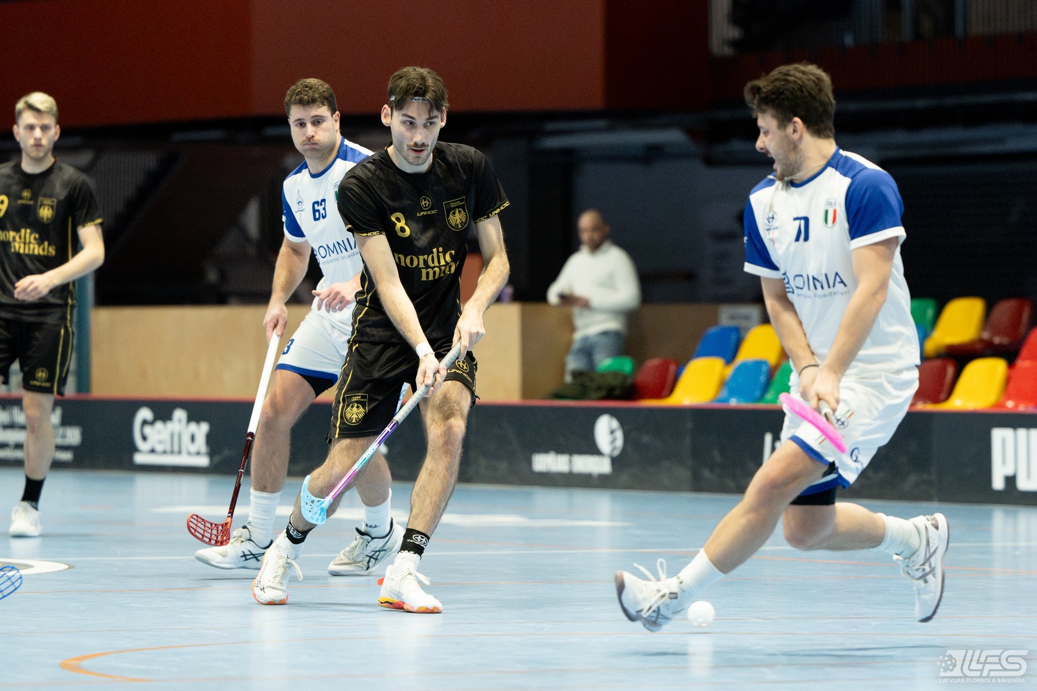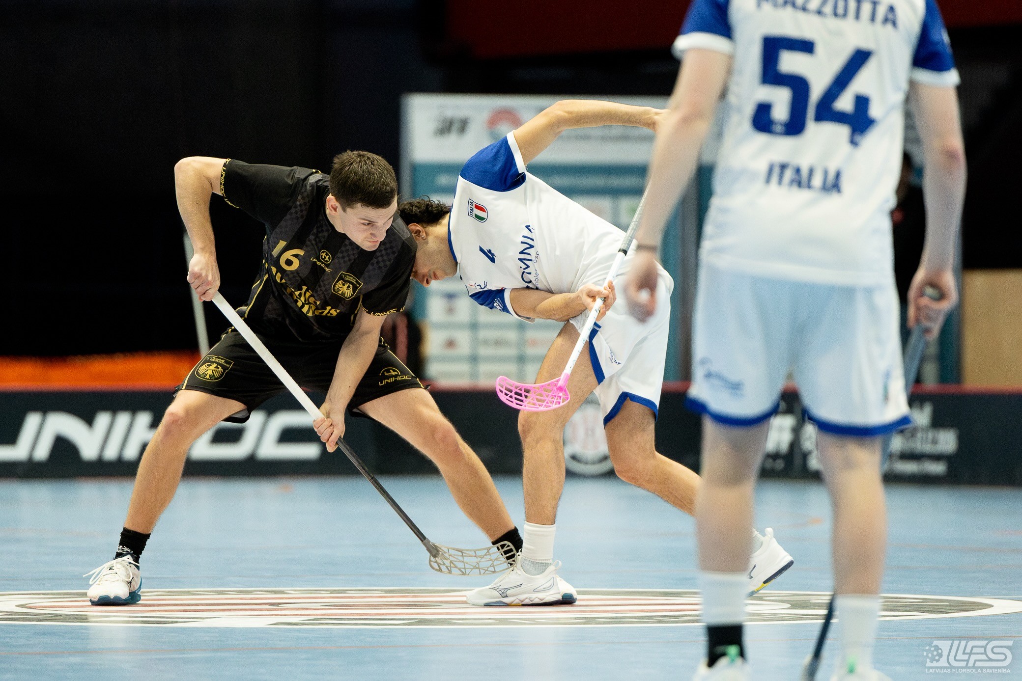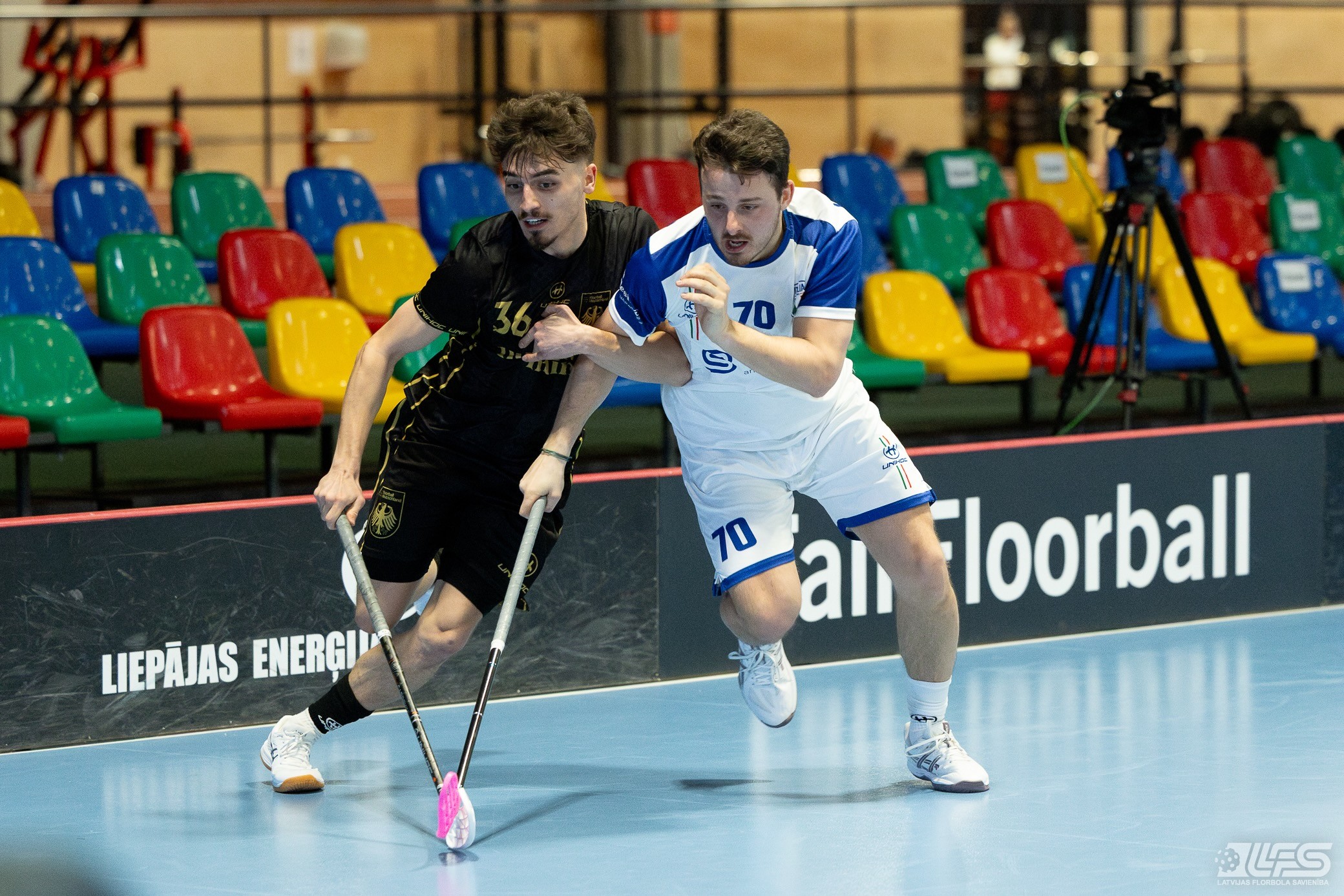Šodien Liepājas Olimpiskā centra manēžā sākās 2026. gada pasaules čempionāta florbolā vīriešiem EUR 2 kvalifikācijas turnīrs. Pirmajā mačā Vācijas izlase ar 13:5 apspēlēja itāļus, komfortablu pārsvaru iegūstot vien cīņas otrajā pusē. Uzvarētāju sastāvā ar 8 (5+3) rezultativitātes punktiem izcēlās Zviedrijas Superlīgā spēlējošais Jakobs Heins. Itālijas valstsvienībai pa diviem vārtiem guva Emanuelle Pasoti un Ārons Roselli.