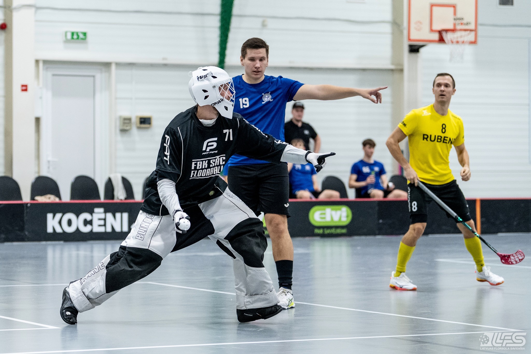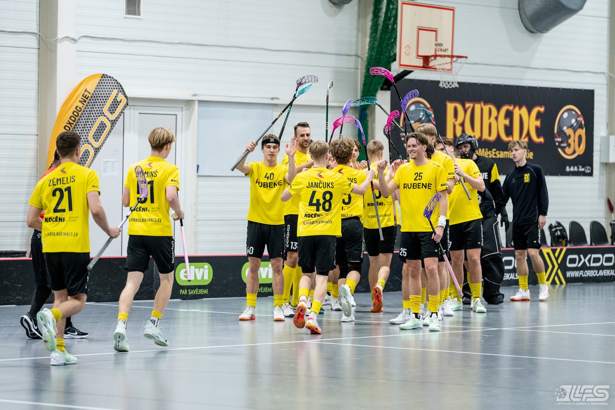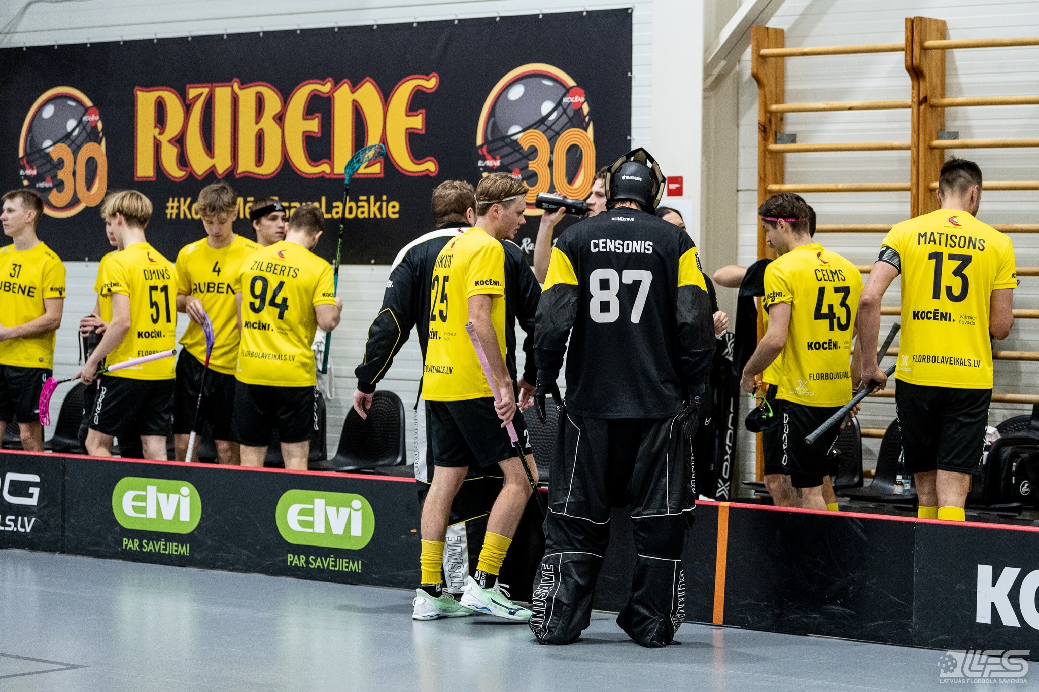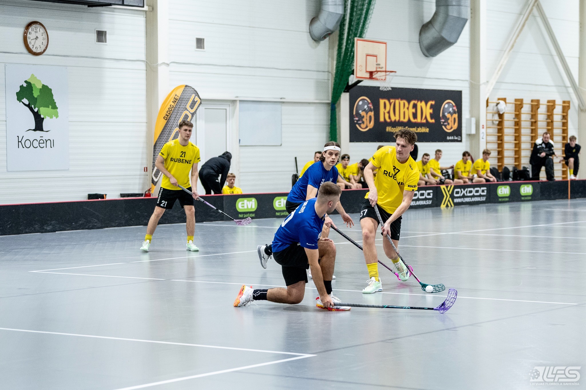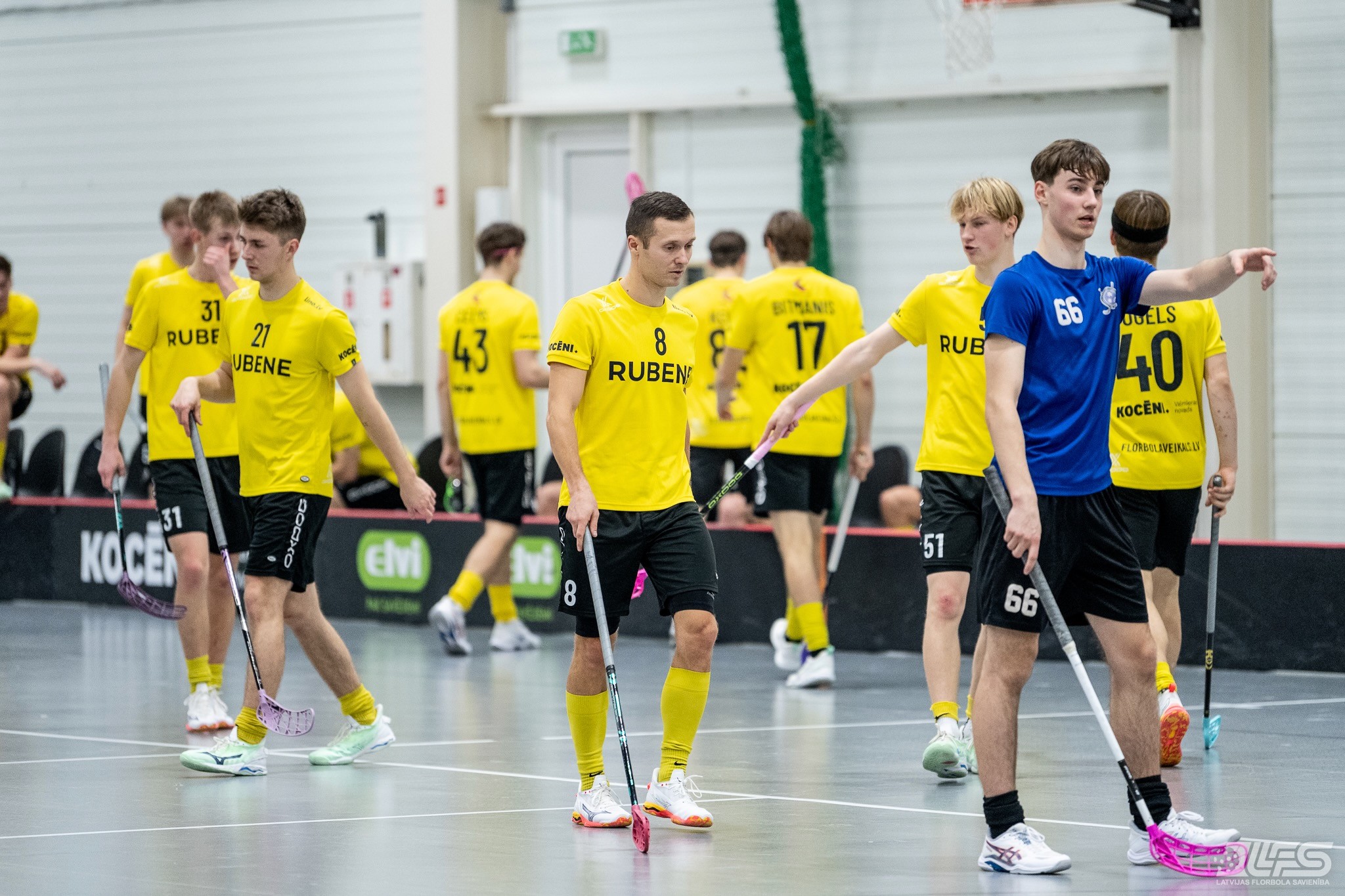 Viena no divām šovakar paredzētajām ELVI florbola līgas vīriešiem spēlēm norisinājās Kocēnu sporta namā, kur "Rubene" uzņēma Ādažu komandu "FBK SĀC". Sešas minūtes pirms pamatlaika beigām rezultāts vēl bija neizšķirts (7:7), bet tad četrus bezatbildes vārtus guva kocēnieši, svinot uzvaru ar 11:7. Rezultatīvākais starp uzvarētājiem ar 4 (3+1) punktiem bija Gustavs Siliņš.