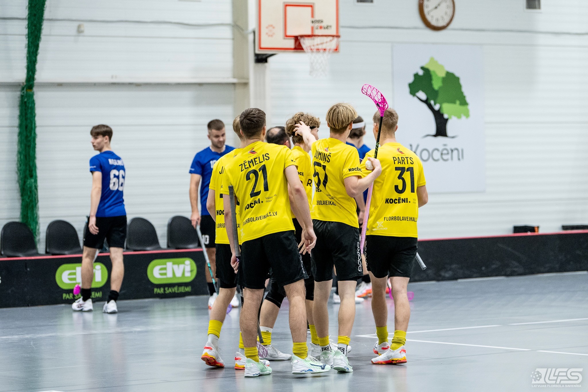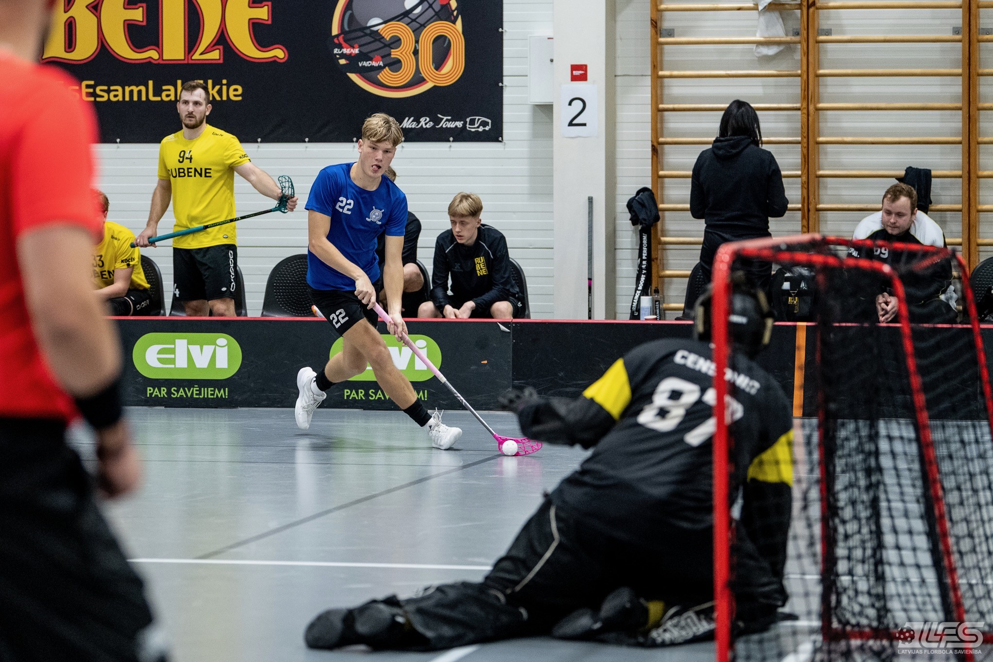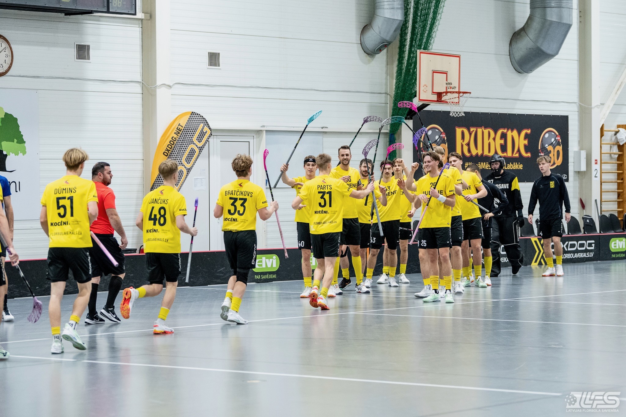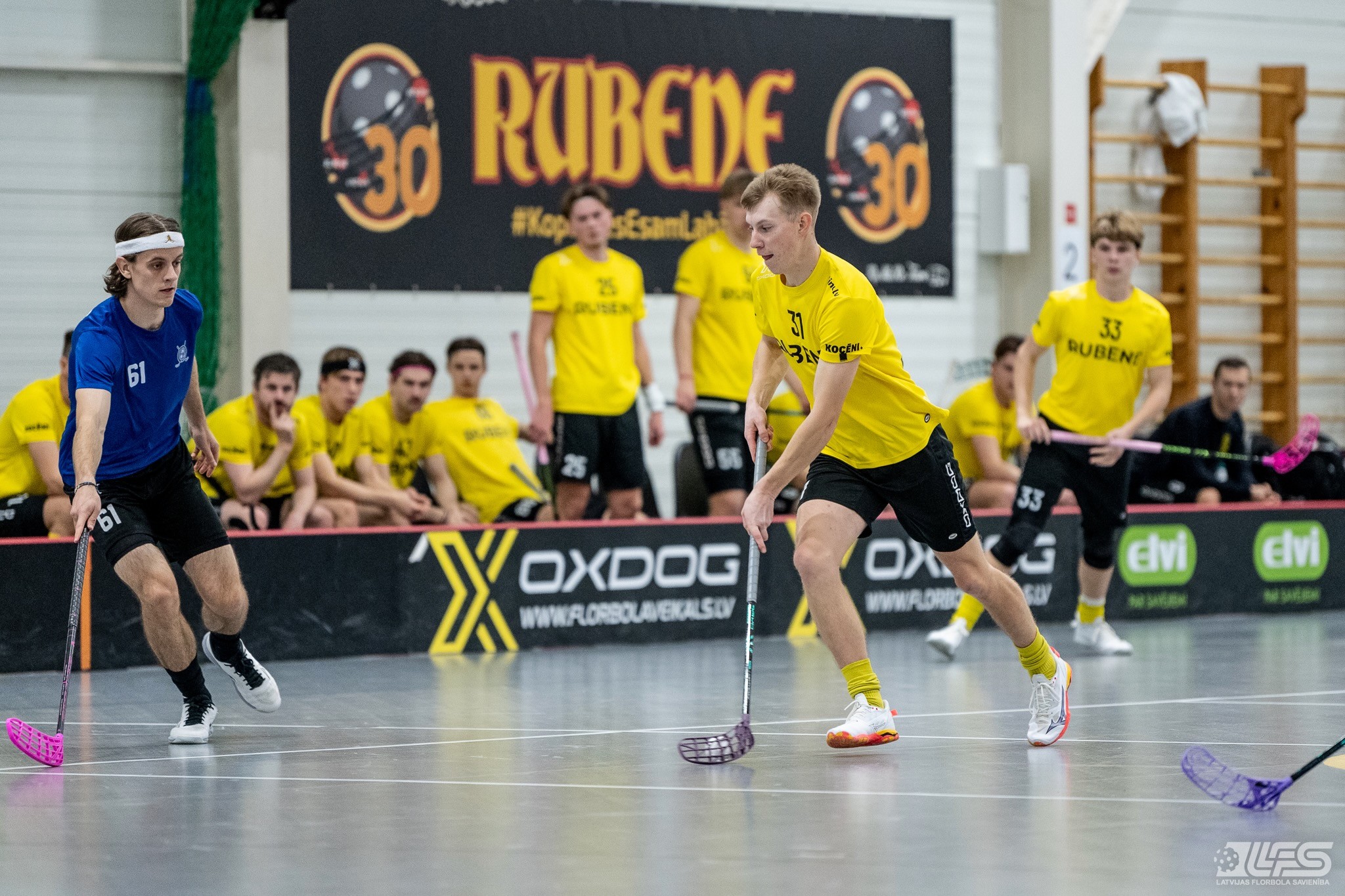 Viena no divām šovakar paredzētajām ELVI florbola līgas vīriešiem spēlēm norisinājās Kocēnu sporta namā, kur "Rubene" uzņēma Ādažu komandu "FBK SĀC". Sešas minūtes pirms pamatlaika beigām rezultāts vēl bija neizšķirts (7:7), bet tad četrus bezatbildes vārtus guva kocēnieši, svinot uzvaru ar 11:7. Rezultatīvākais starp uzvarētājiem ar 4 (3+1) punktiem bija Gustavs Siliņš.