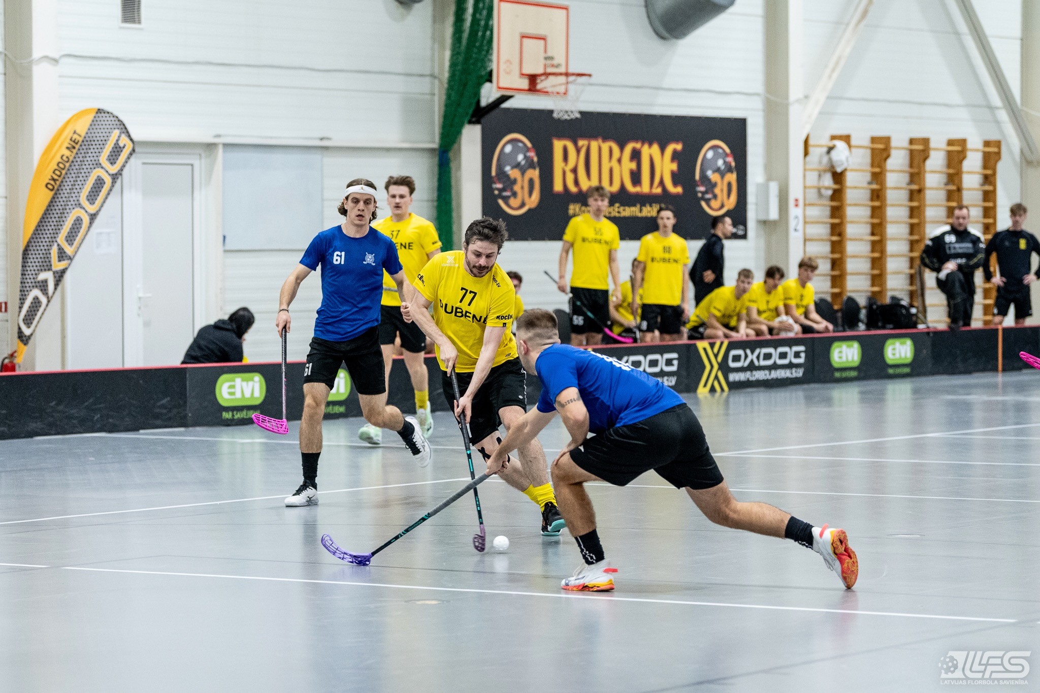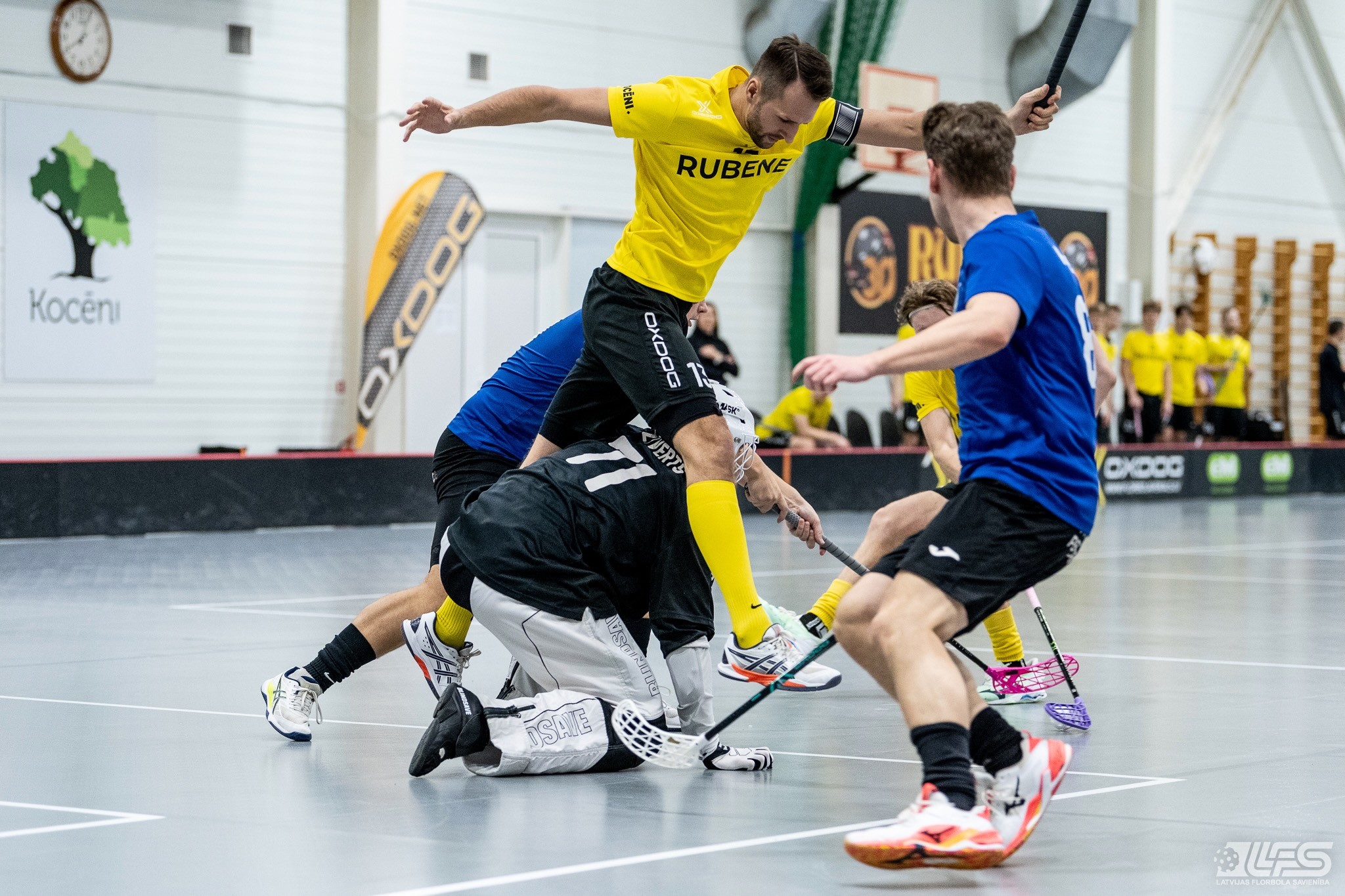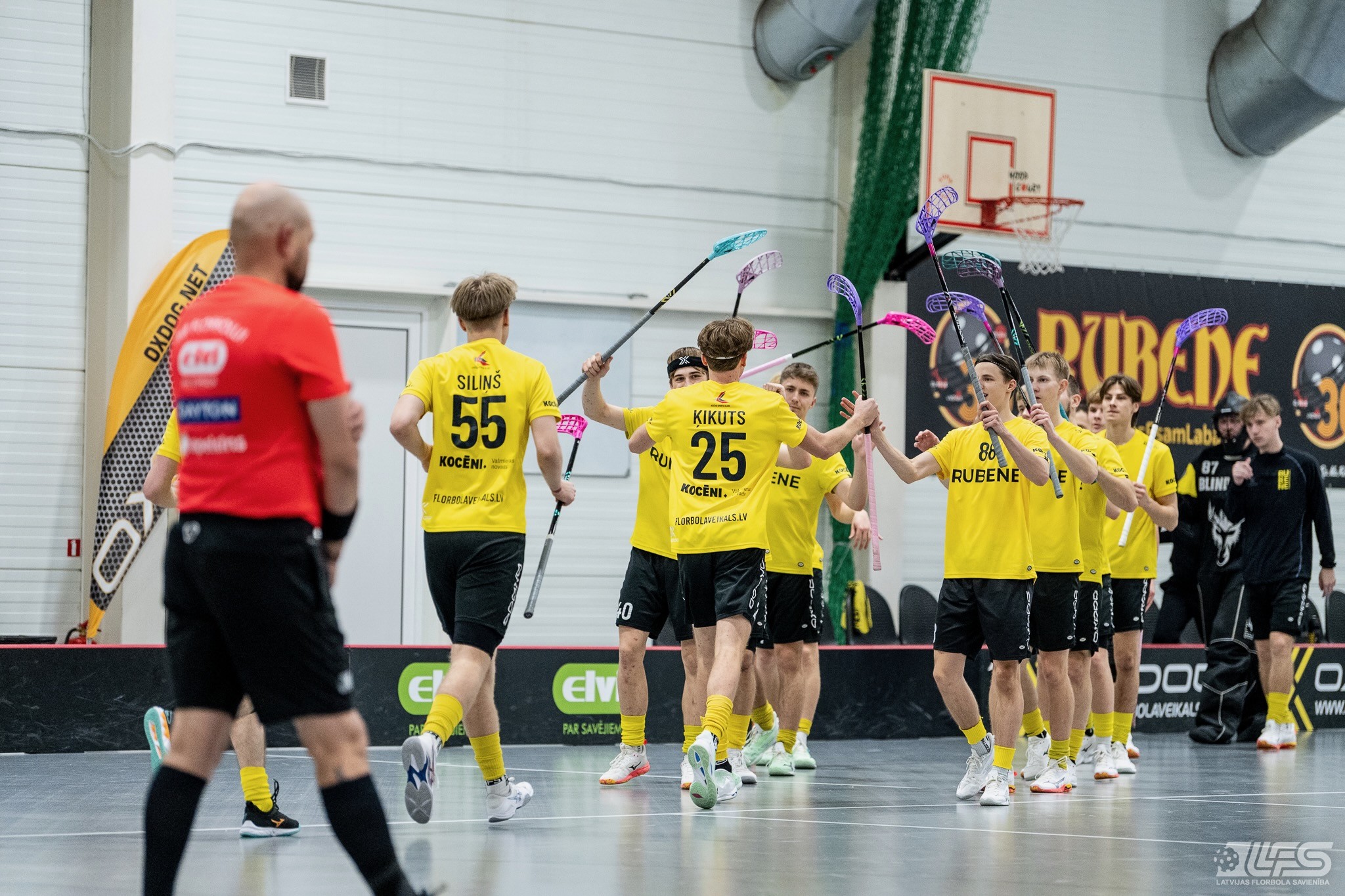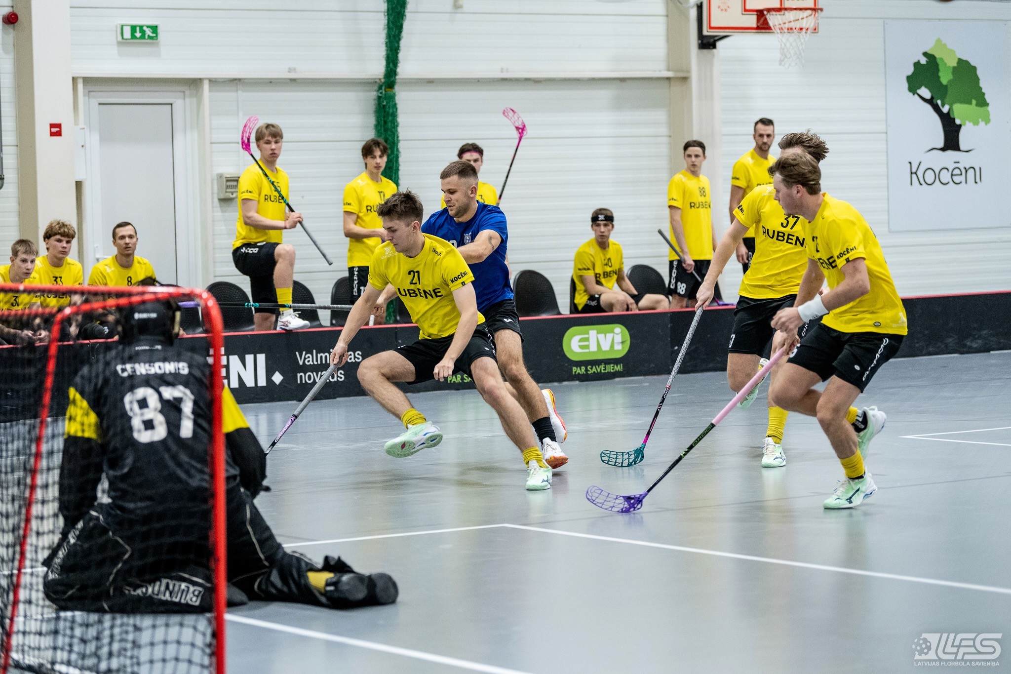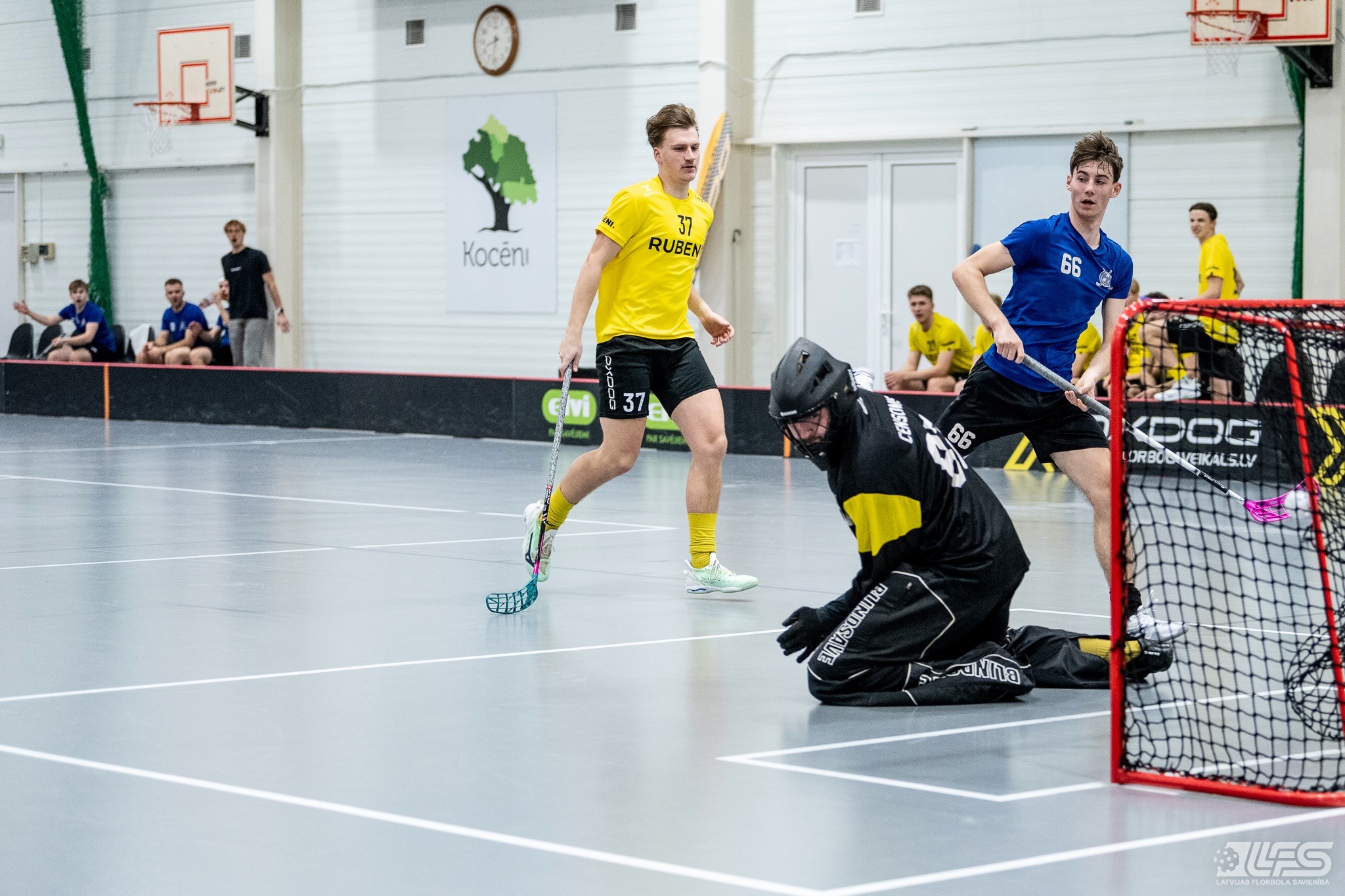 Viena no divām šovakar paredzētajām ELVI florbola līgas vīriešiem spēlēm norisinājās Kocēnu sporta namā, kur "Rubene" uzņēma Ādažu komandu "FBK SĀC". Sešas minūtes pirms pamatlaika beigām rezultāts vēl bija neizšķirts (7:7), bet tad četrus bezatbildes vārtus guva kocēnieši, svinot uzvaru ar 11:7. Rezultatīvākais starp uzvarētājiem ar 4 (3+1) punktiem bija Gustavs Siliņš.