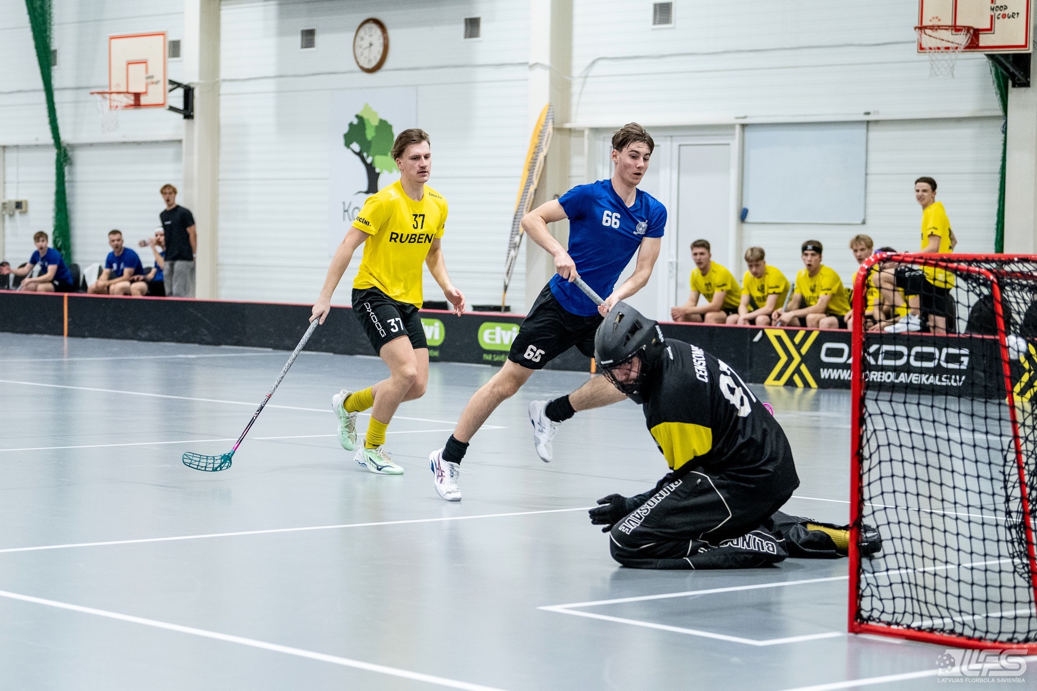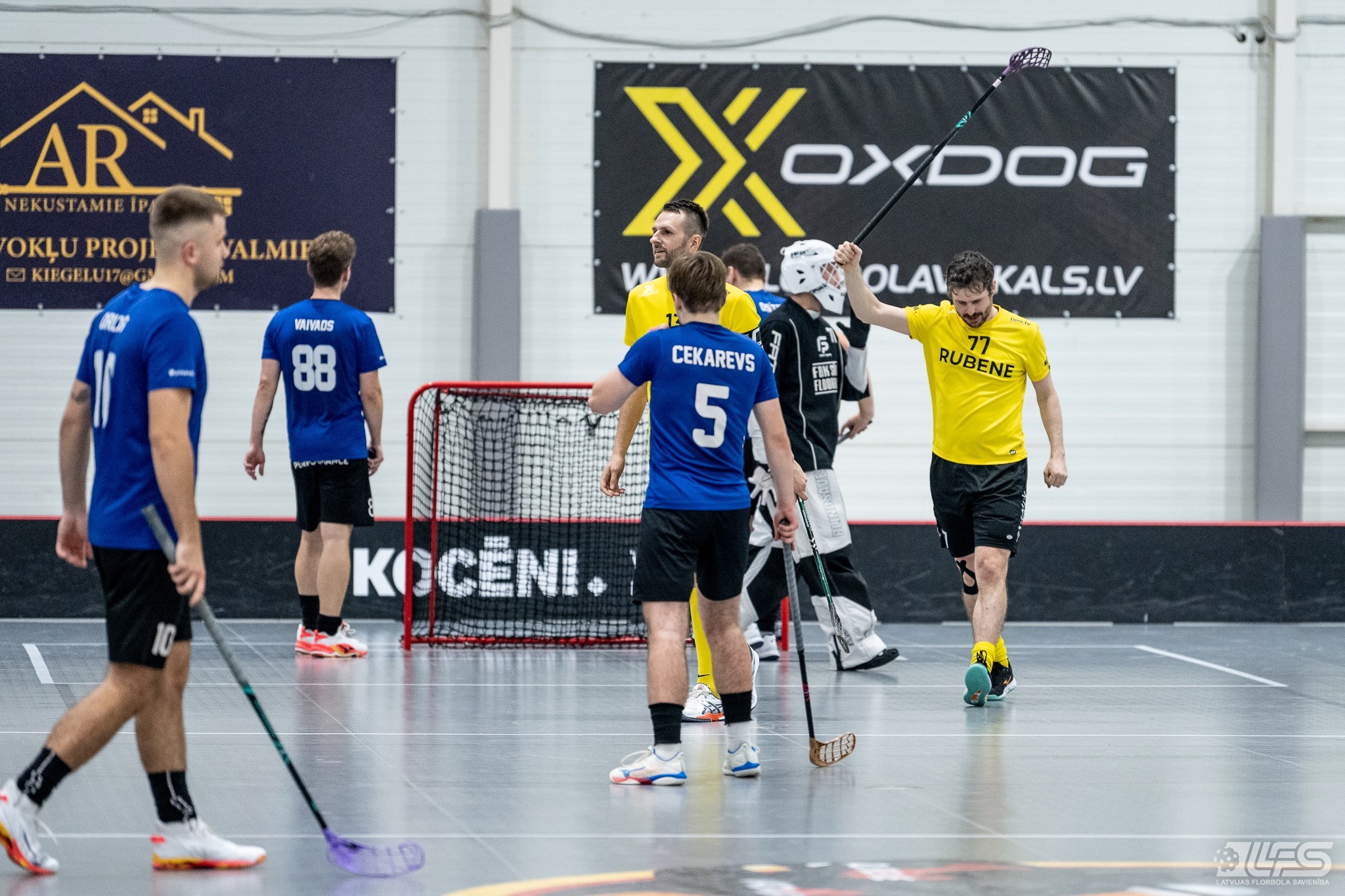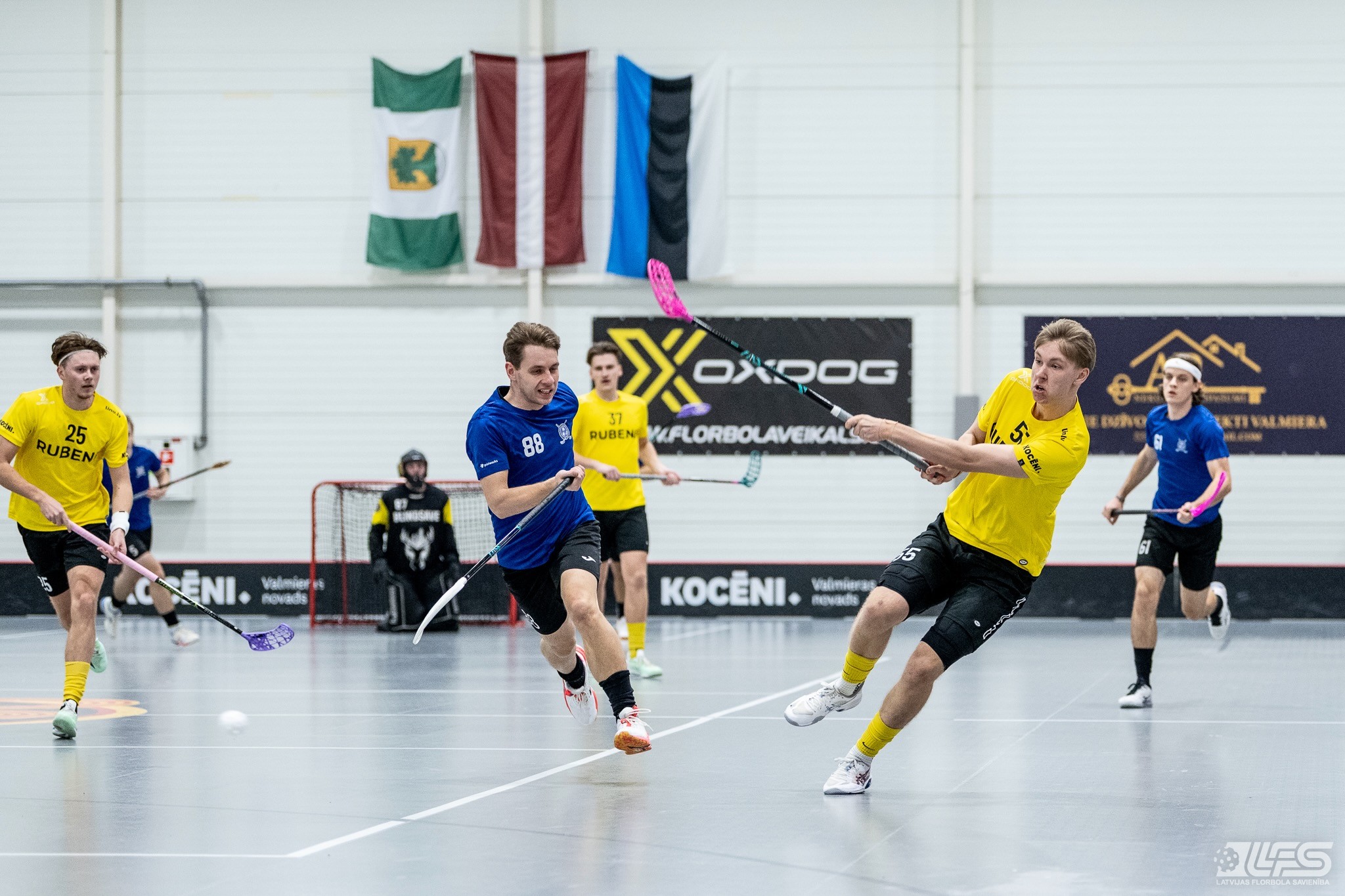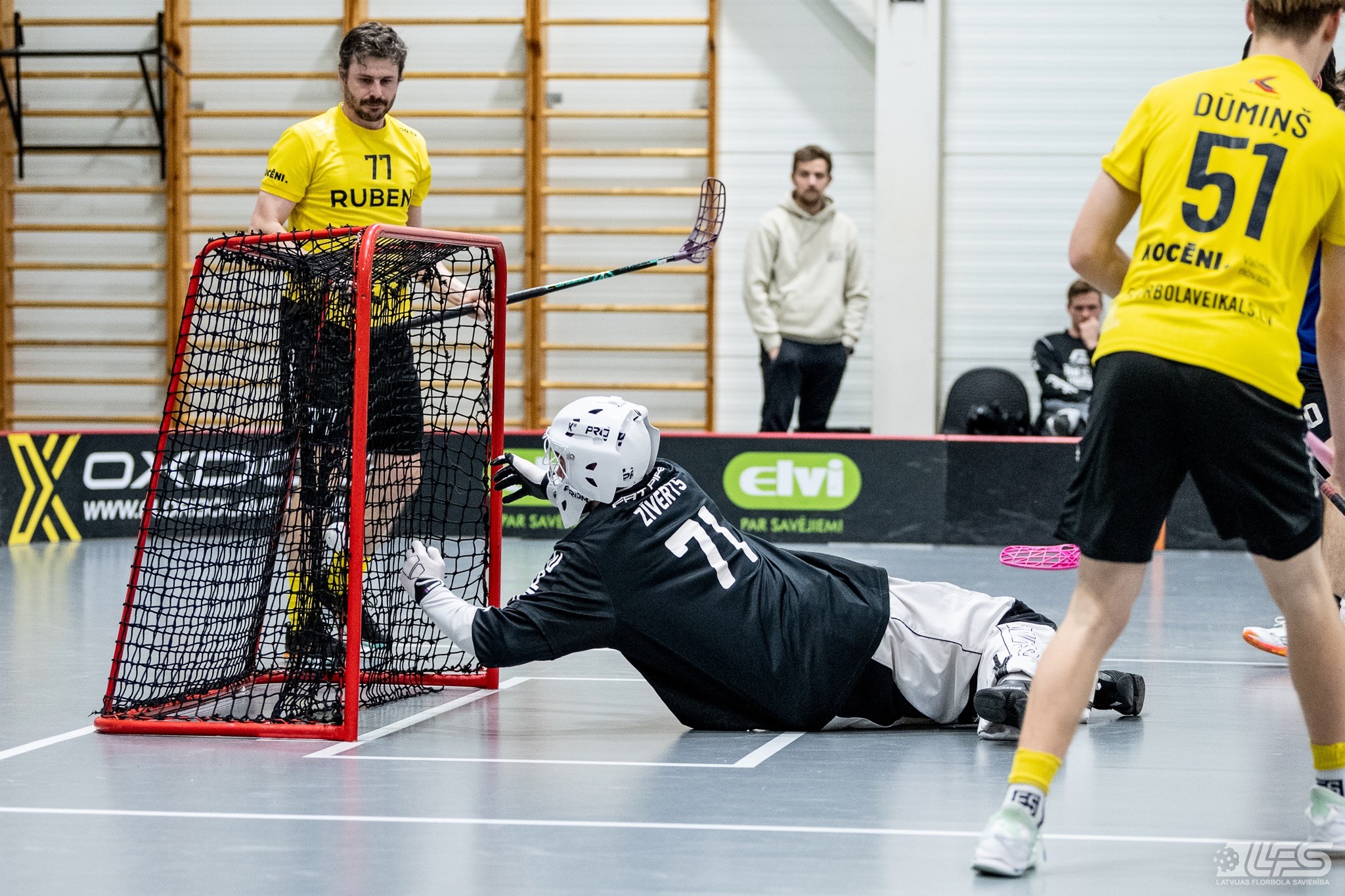 Viena no divām šovakar paredzētajām ELVI florbola līgas vīriešiem spēlēm norisinājās Kocēnu sporta namā, kur "Rubene" uzņēma Ādažu komandu "FBK SĀC". Sešas minūtes pirms pamatlaika beigām rezultāts vēl bija neizšķirts (7:7), bet tad četrus bezatbildes vārtus guva kocēnieši, svinot uzvaru ar 11:7. Rezultatīvākais starp uzvarētājiem ar 4 (3+1) punktiem bija Gustavs Siliņš.