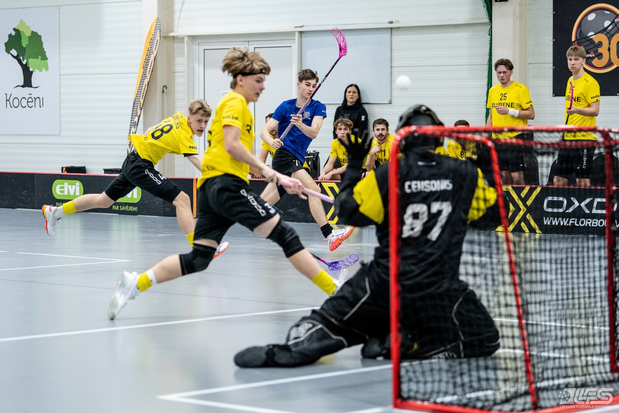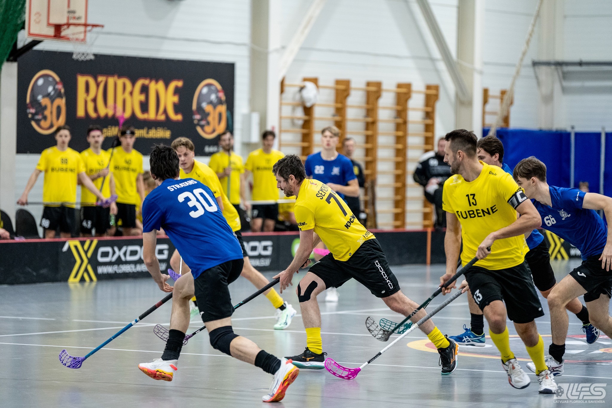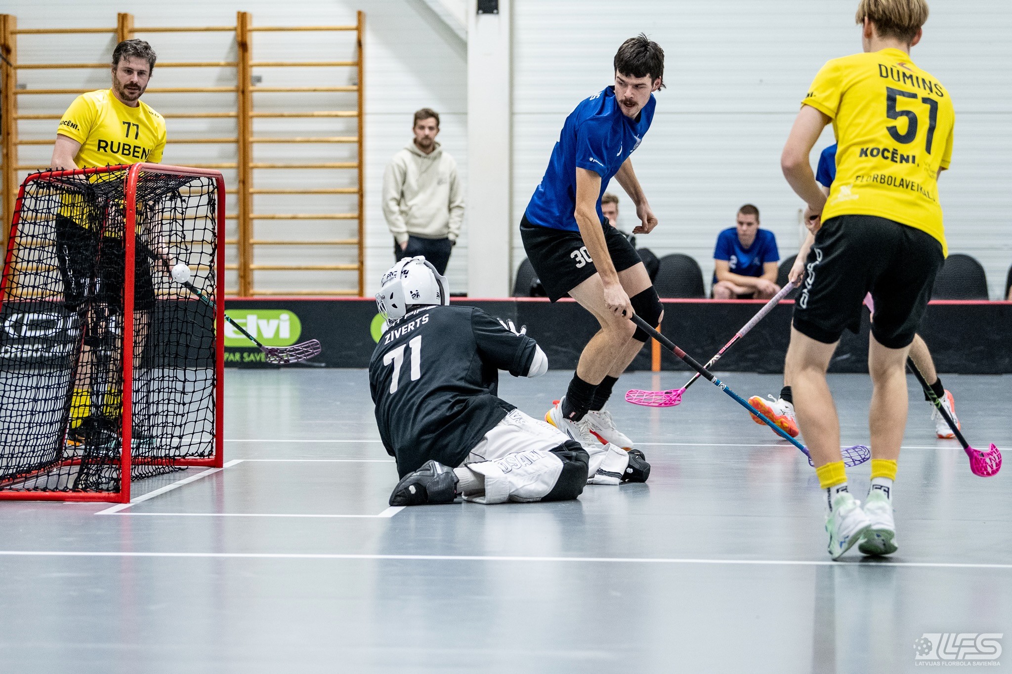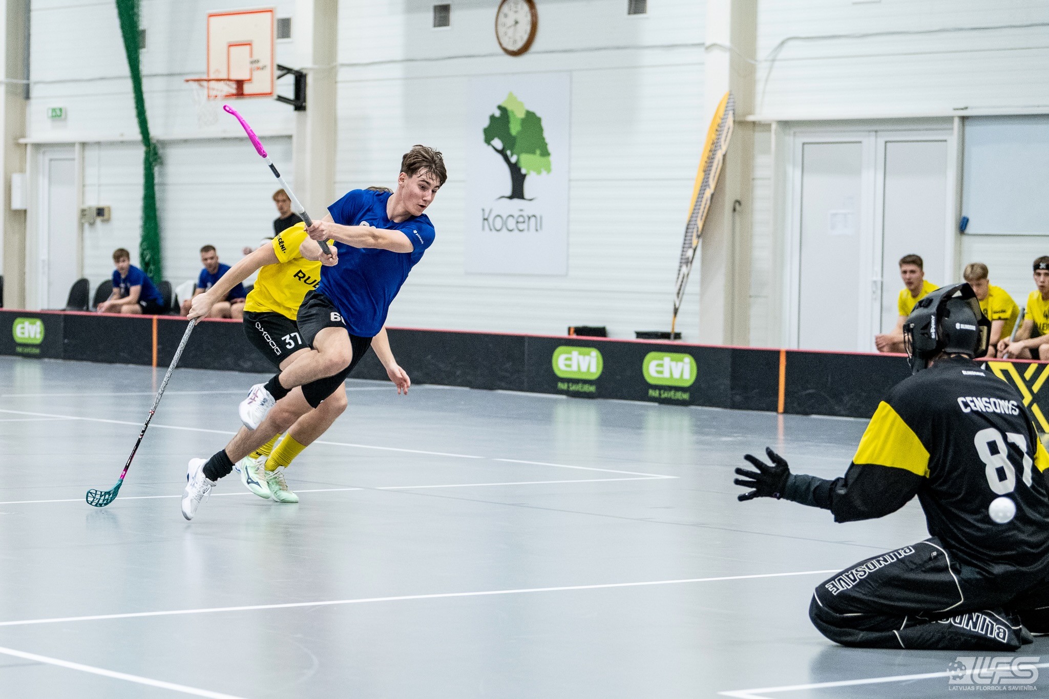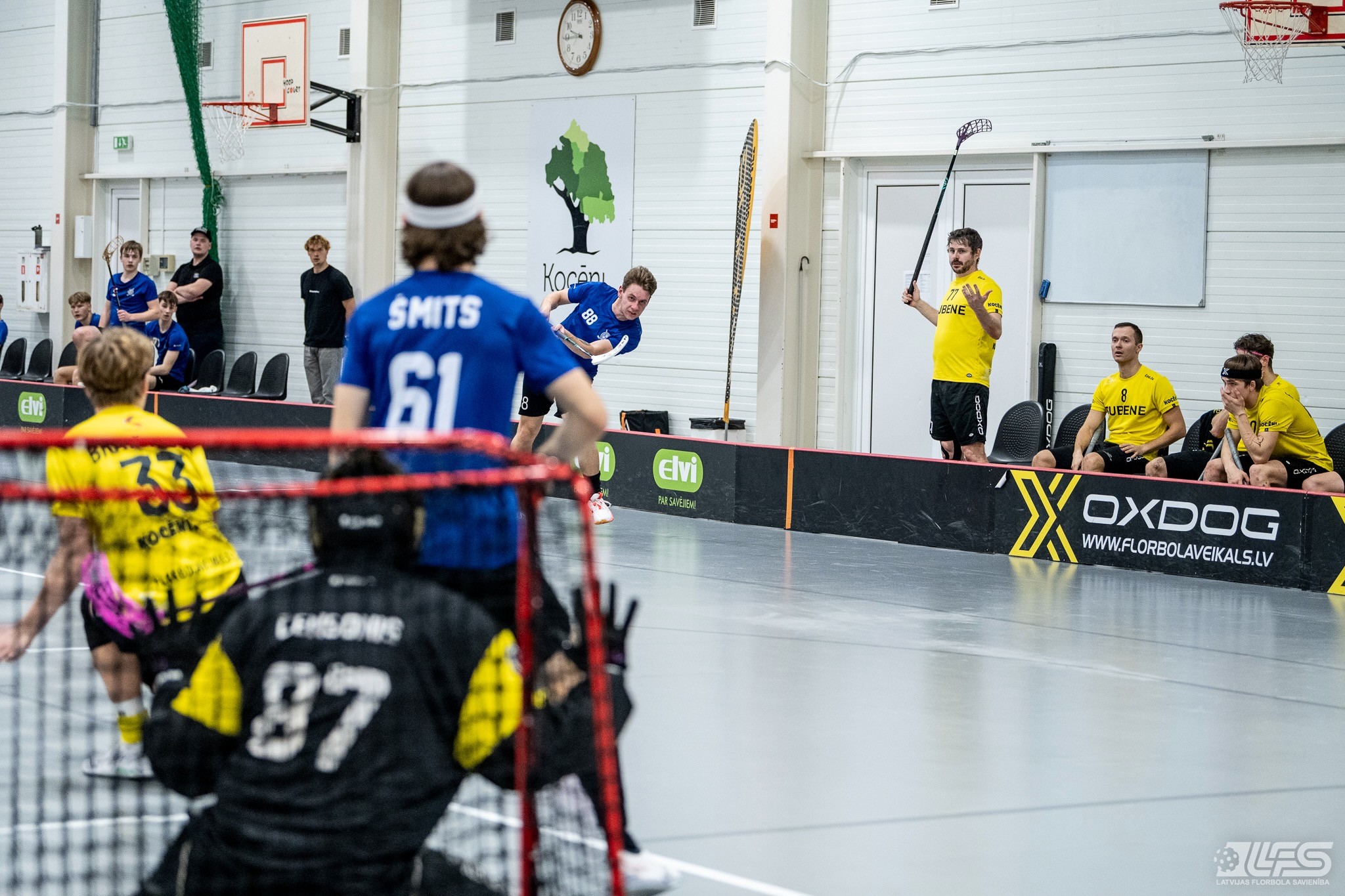 Viena no divām šovakar paredzētajām ELVI florbola līgas vīriešiem spēlēm norisinājās Kocēnu sporta namā, kur "Rubene" uzņēma Ādažu komandu "FBK SĀC". Sešas minūtes pirms pamatlaika beigām rezultāts vēl bija neizšķirts (7:7), bet tad četrus bezatbildes vārtus guva kocēnieši, svinot uzvaru ar 11:7. Rezultatīvākais starp uzvarētājiem ar 4 (3+1) punktiem bija Gustavs Siliņš.