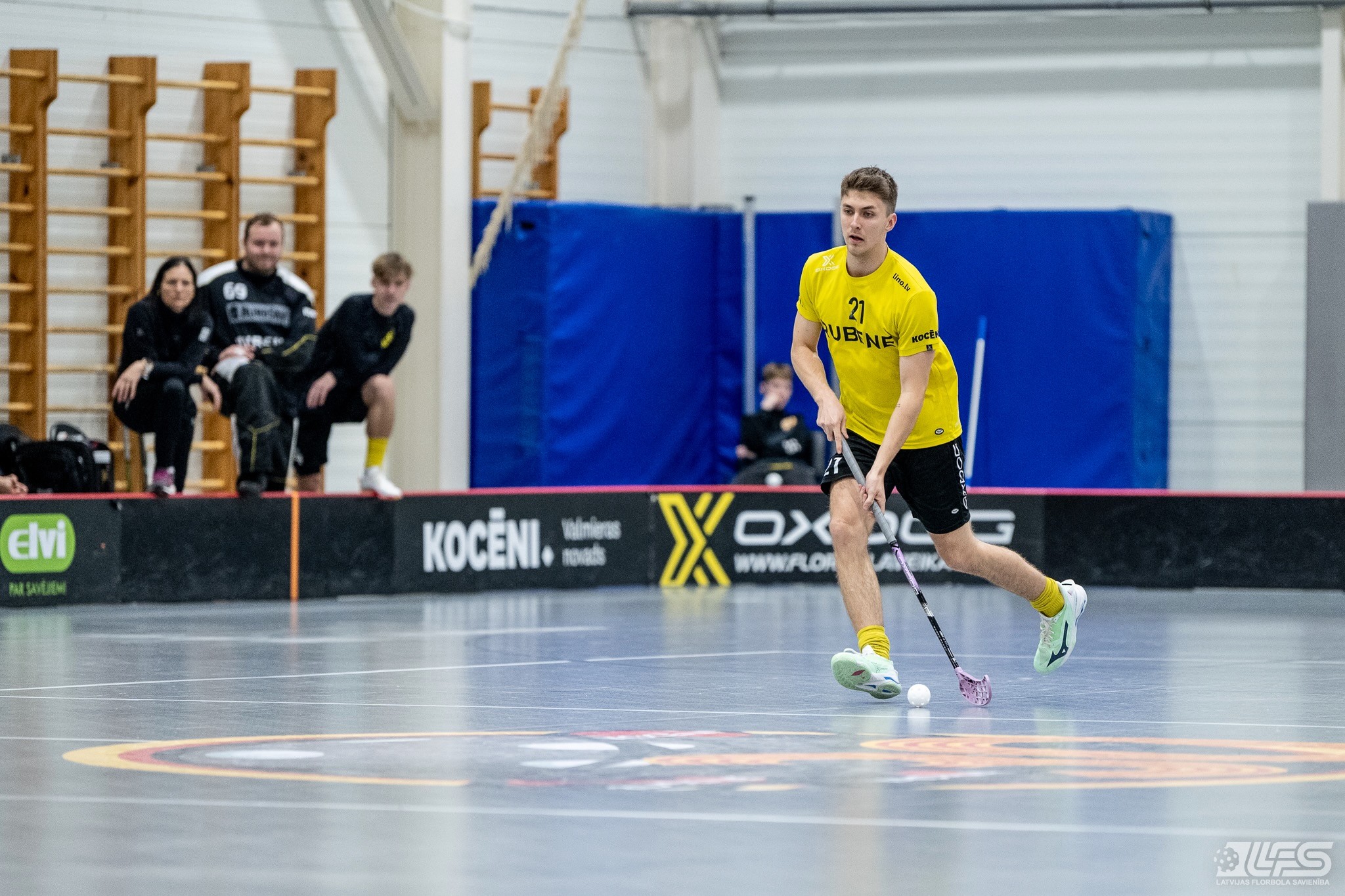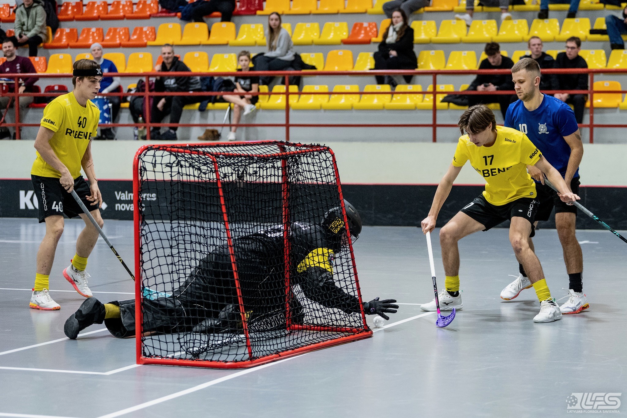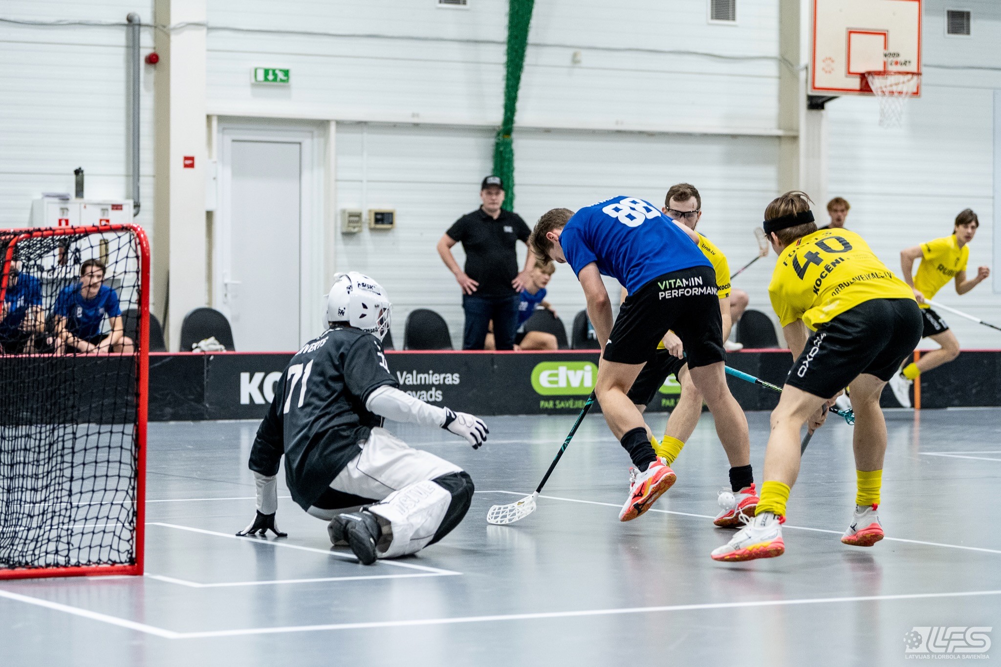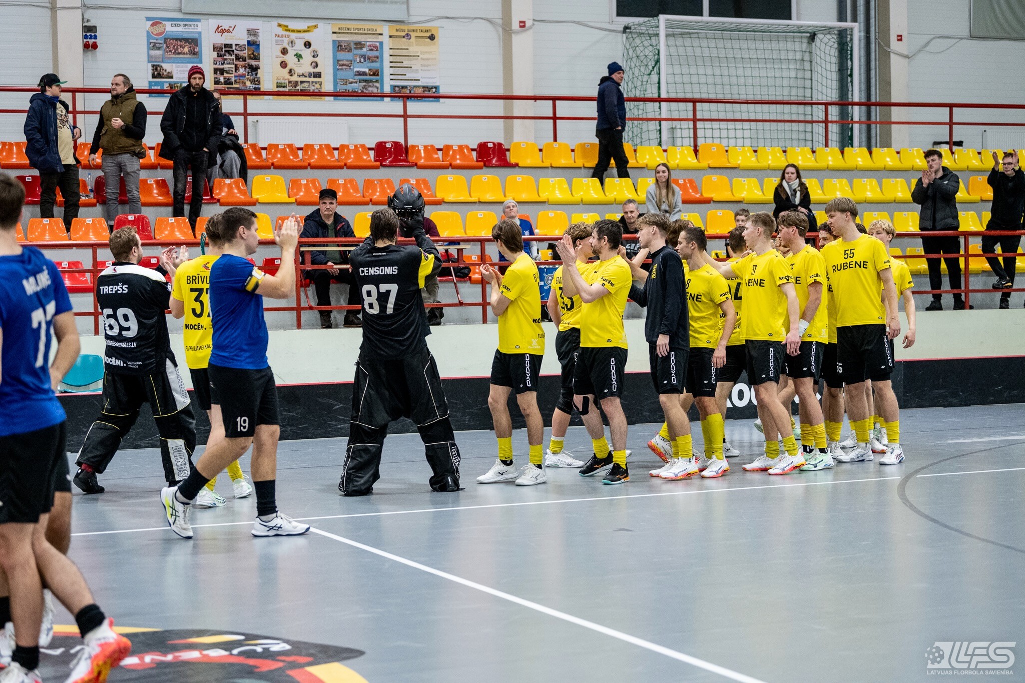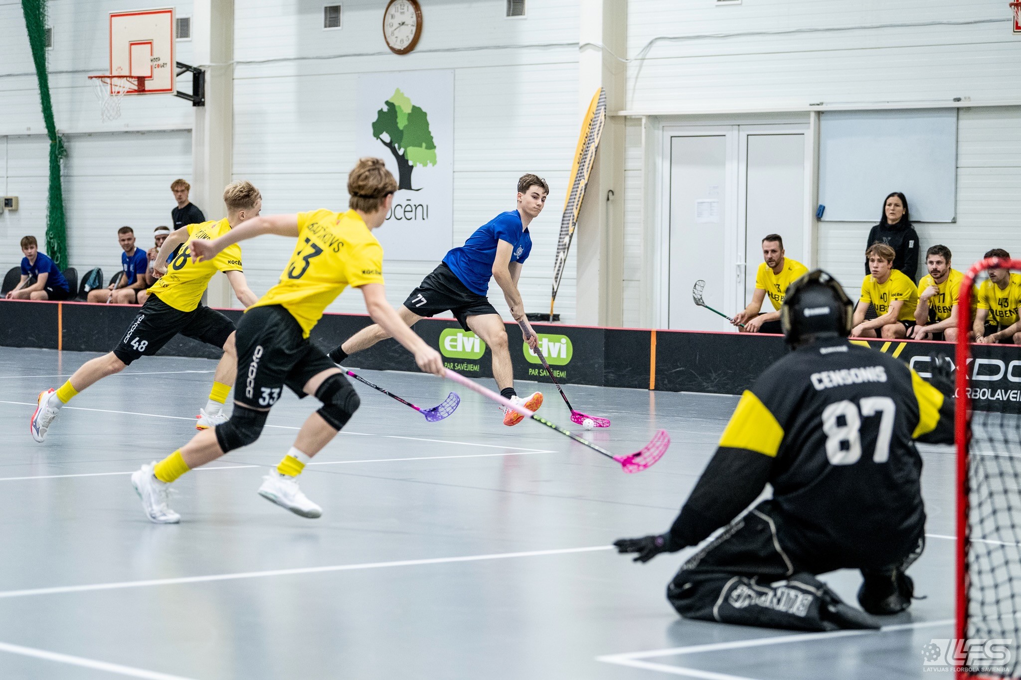 Viena no divām šovakar paredzētajām ELVI florbola līgas vīriešiem spēlēm norisinājās Kocēnu sporta namā, kur "Rubene" uzņēma Ādažu komandu "FBK SĀC". Sešas minūtes pirms pamatlaika beigām rezultāts vēl bija neizšķirts (7:7), bet tad četrus bezatbildes vārtus guva kocēnieši, svinot uzvaru ar 11:7. Rezultatīvākais starp uzvarētājiem ar 4 (3+1) punktiem bija Gustavs Siliņš.