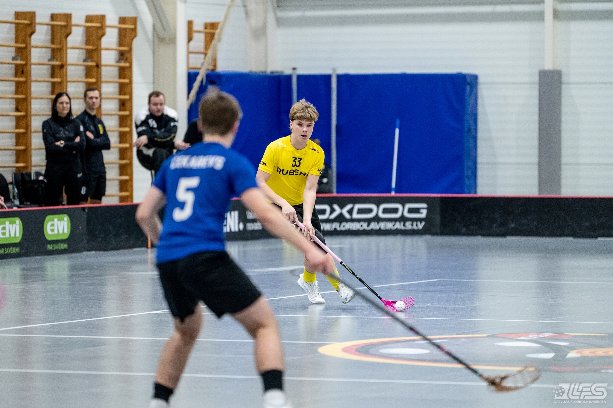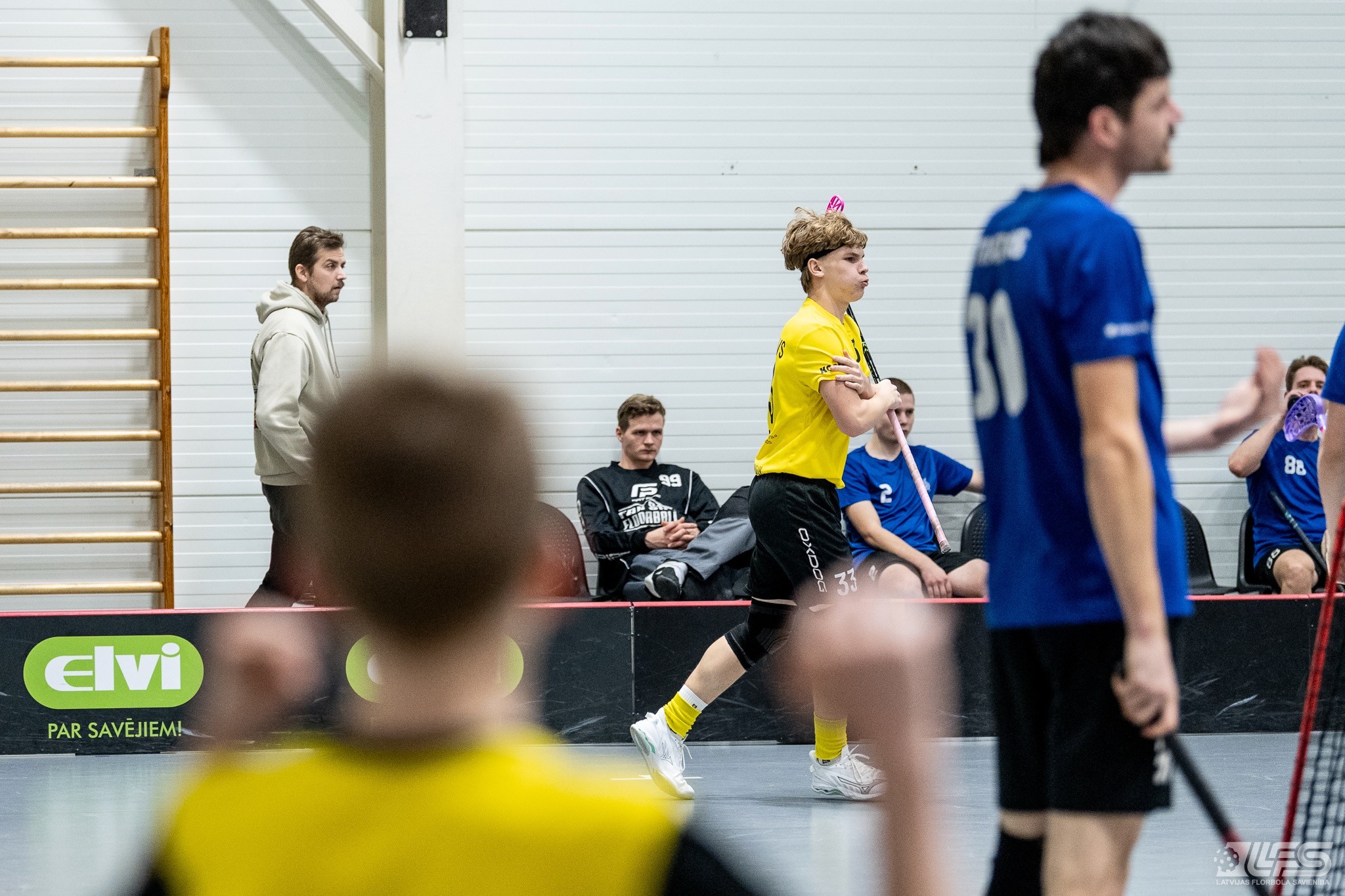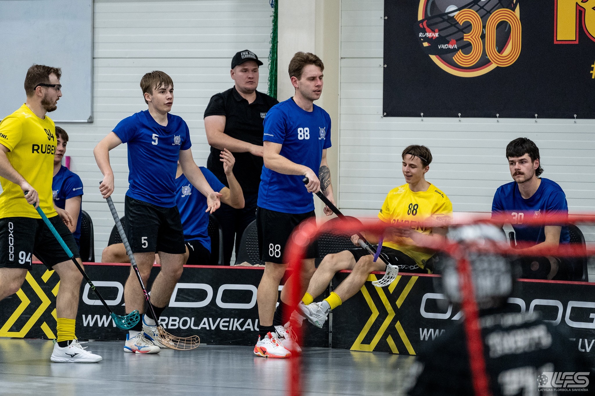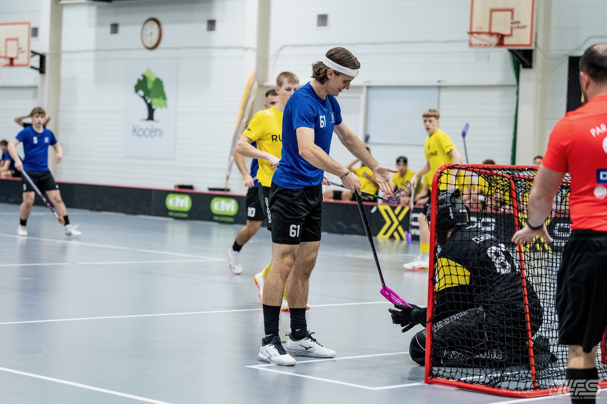 Viena no divām šovakar paredzētajām ELVI florbola līgas vīriešiem spēlēm norisinājās Kocēnu sporta namā, kur "Rubene" uzņēma Ādažu komandu "FBK SĀC". Sešas minūtes pirms pamatlaika beigām rezultāts vēl bija neizšķirts (7:7), bet tad četrus bezatbildes vārtus guva kocēnieši, svinot uzvaru ar 11:7. Rezultatīvākais starp uzvarētājiem ar 4 (3+1) punktiem bija Gustavs Siliņš.