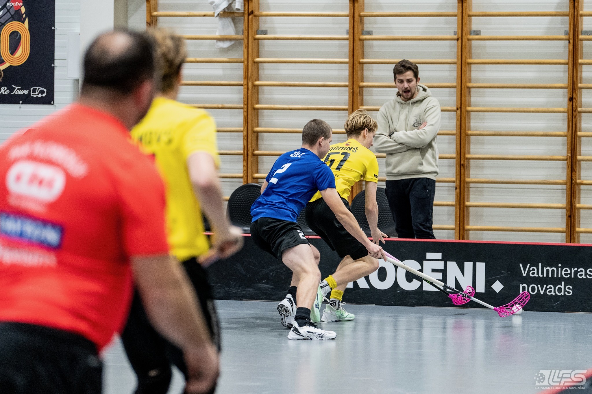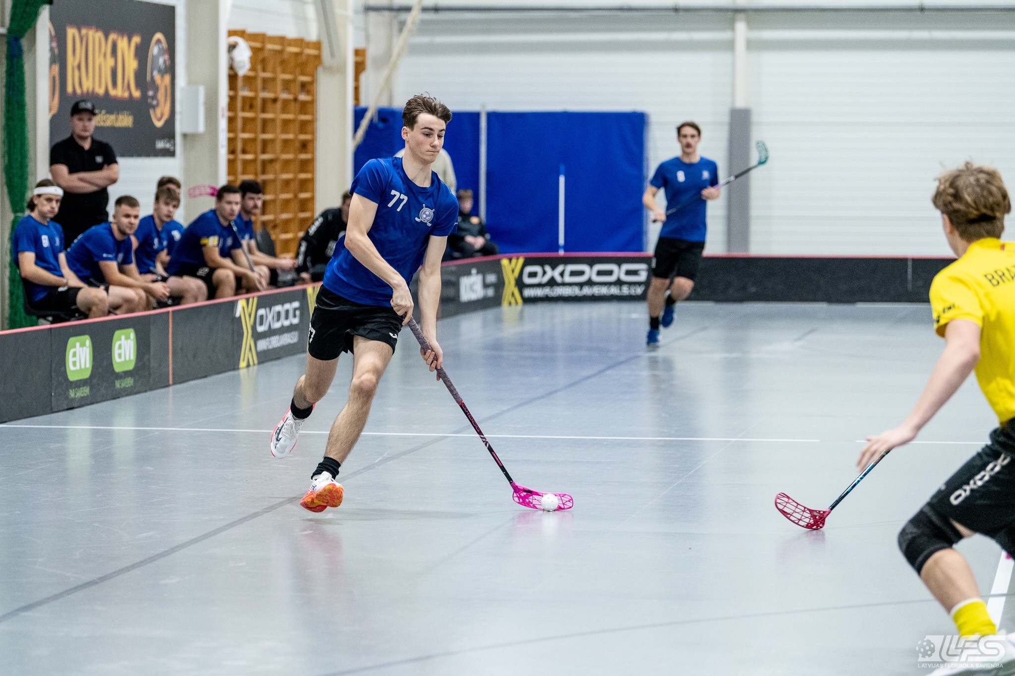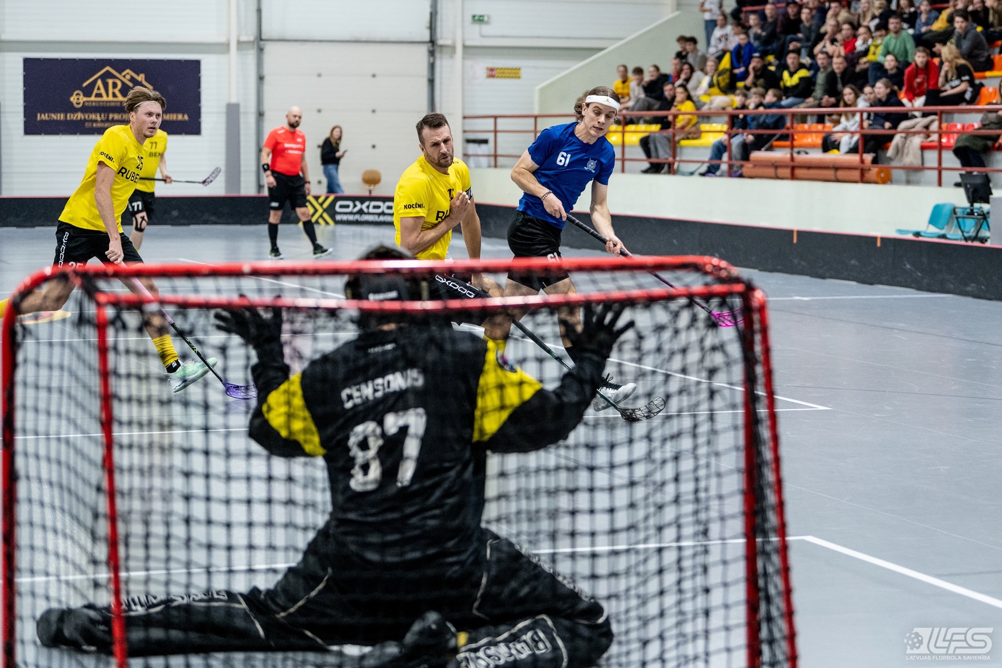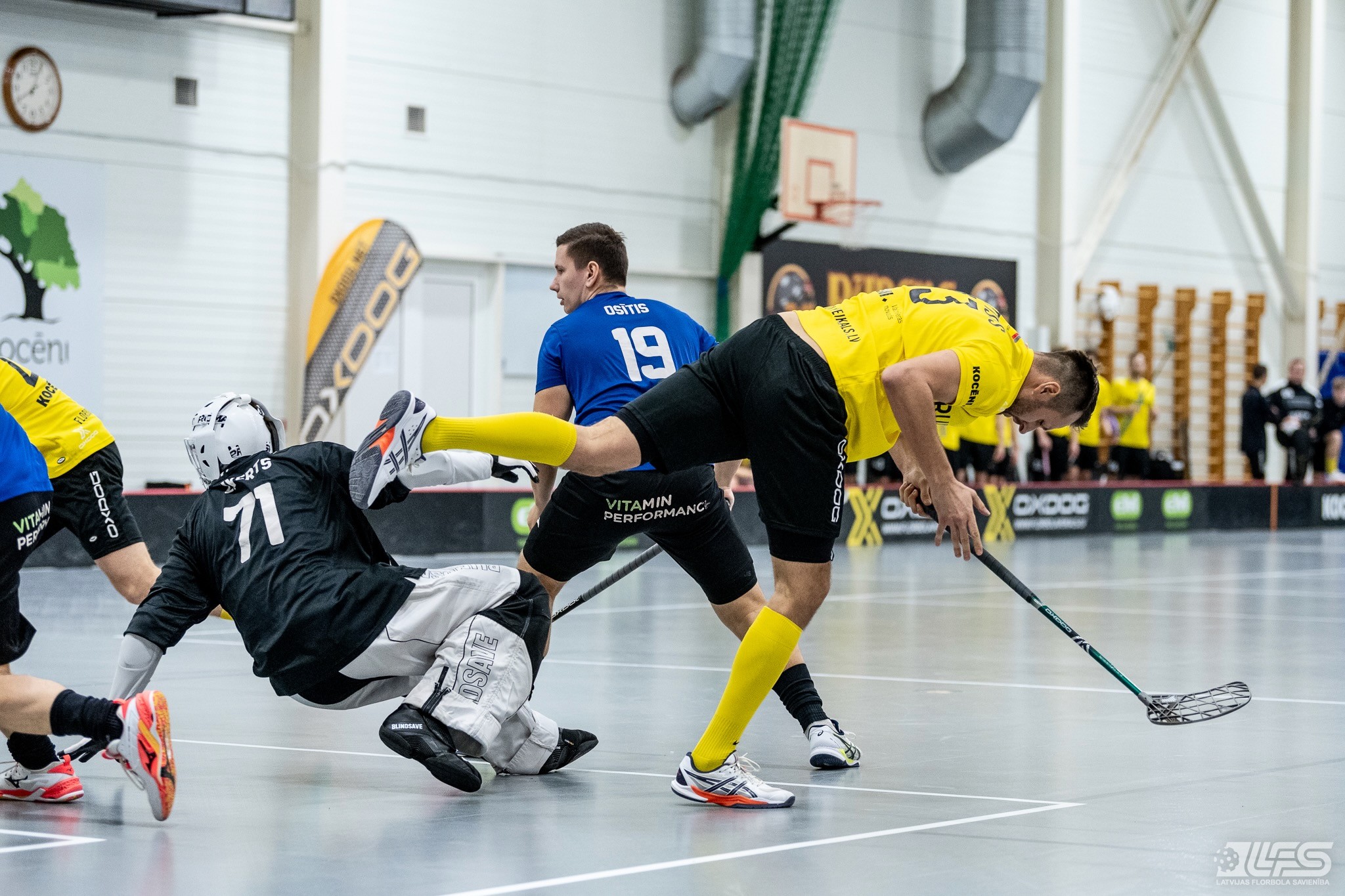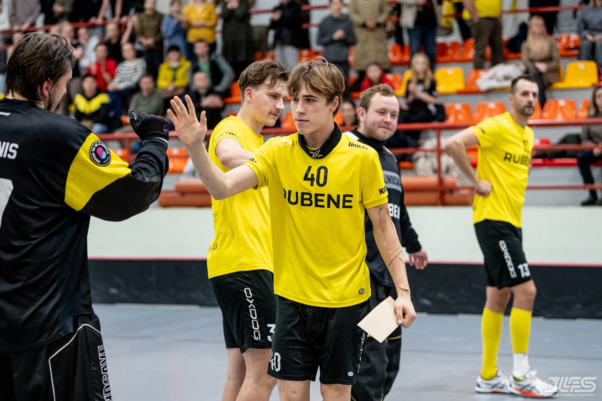 Viena no divām šovakar paredzētajām ELVI florbola līgas vīriešiem spēlēm norisinājās Kocēnu sporta namā, kur "Rubene" uzņēma Ādažu komandu "FBK SĀC". Sešas minūtes pirms pamatlaika beigām rezultāts vēl bija neizšķirts (7:7), bet tad četrus bezatbildes vārtus guva kocēnieši, svinot uzvaru ar 11:7. Rezultatīvākais starp uzvarētājiem ar 4 (3+1) punktiem bija Gustavs Siliņš.