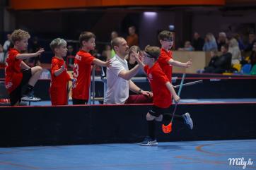 Latvijas Bērnu un jauniešu čempionāta florbolā vecuma grupas ZU15 1. divīzijas turnīrā pie panākuma tikusi Koc...