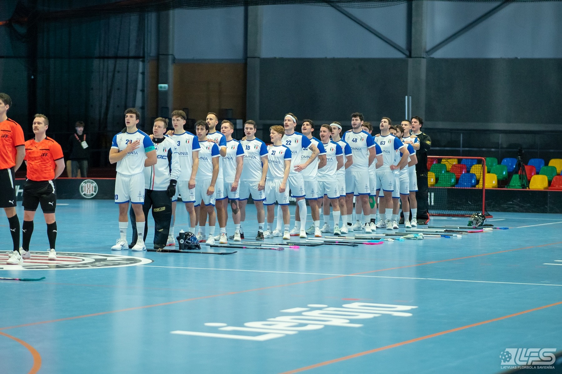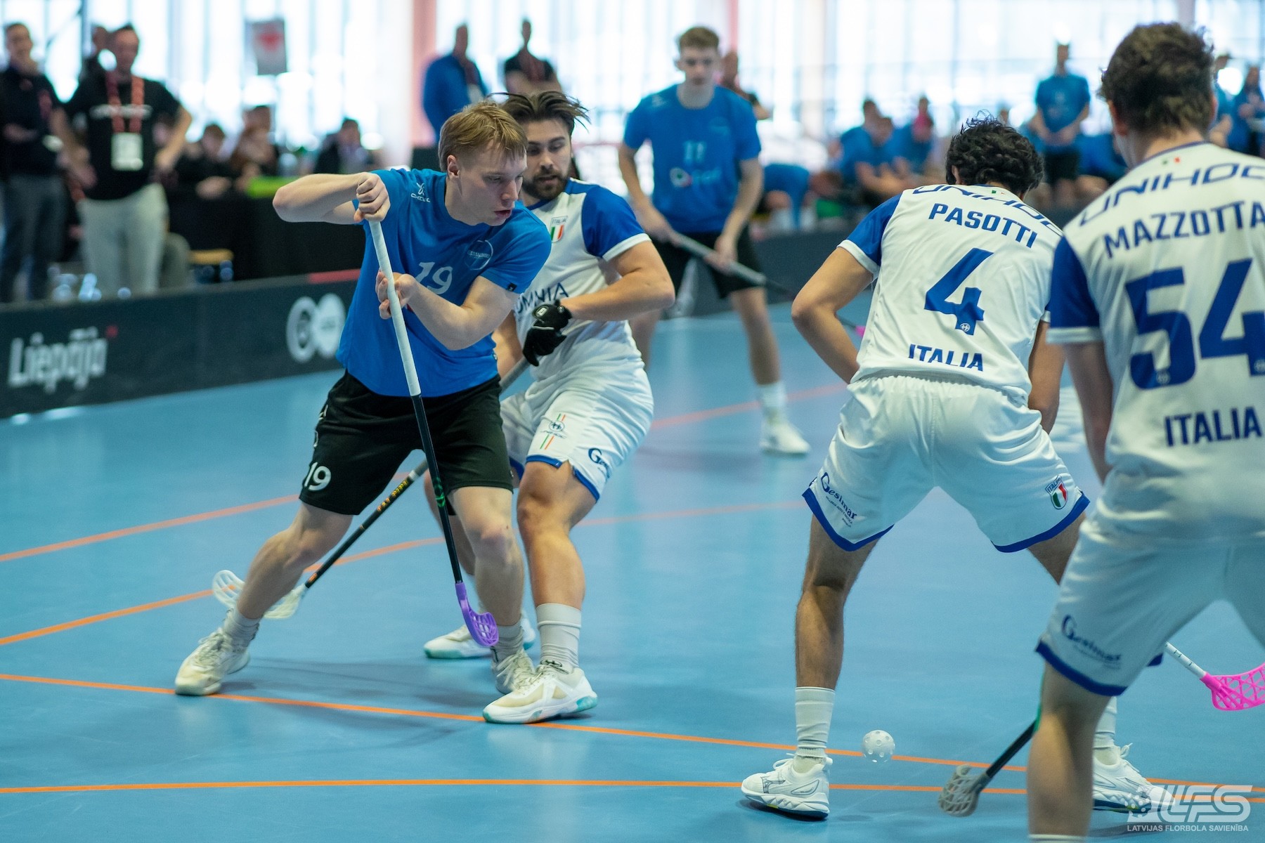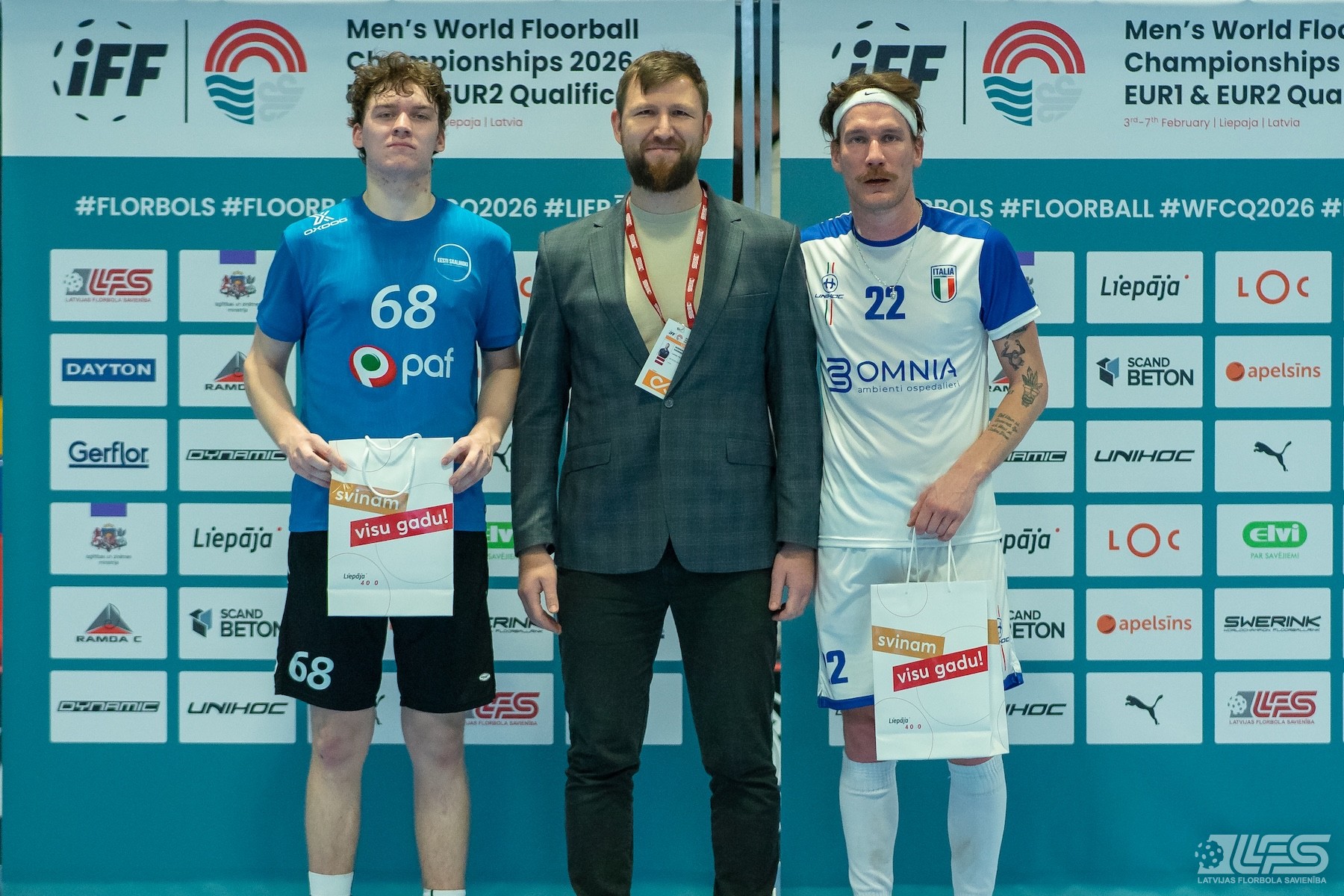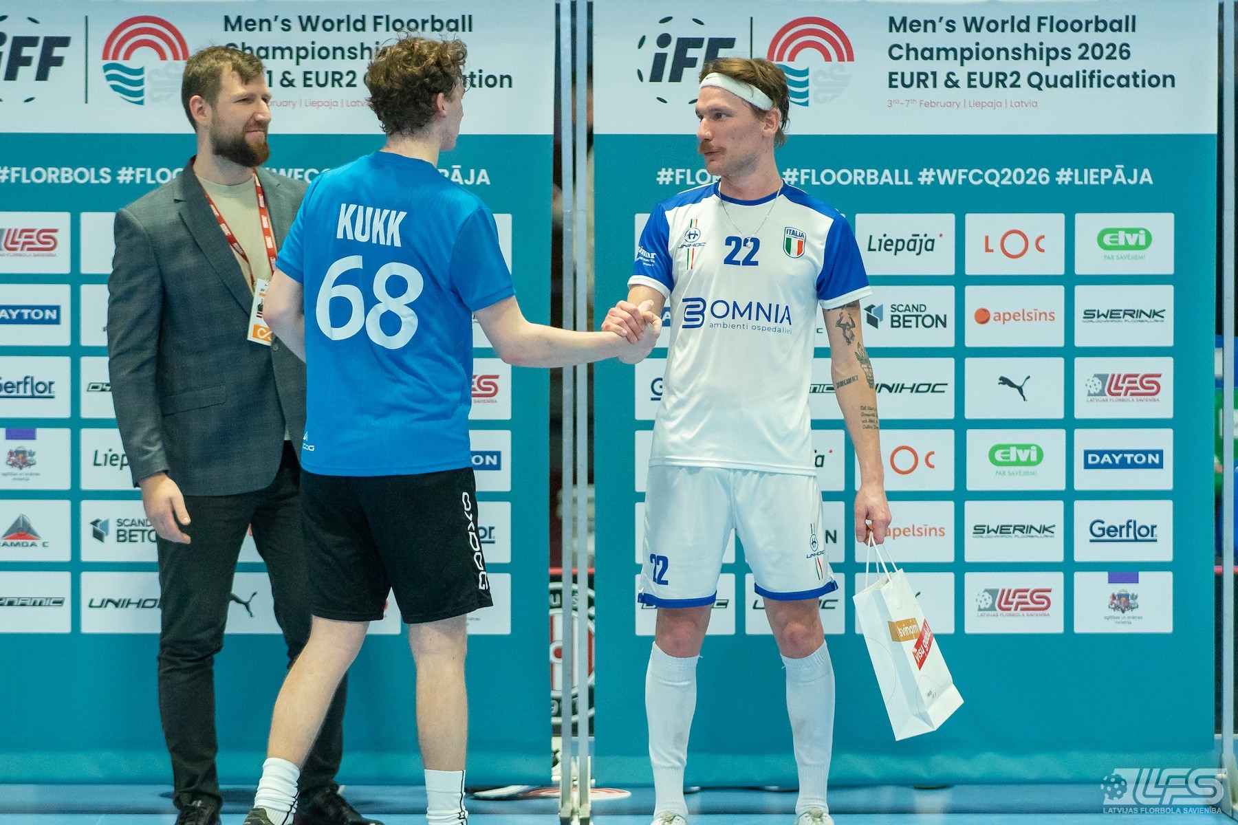 Pirmais pārsteigums fiksēts Liepājas Olimpiskā centra manēžā notiekošajā pasaules čempionāta florbolā vīriešiem EUR 2 kvalifikācijas turnīrā, kur neizšķirti nospēlēja igauņi un itāļi. Itālijas valstsvienība pēc divām trešdaļām bija iekrājusi pat trīs vārtu handikapu (7:4) tomēr ziemeļnieki spēja deficītu likvidēt un paši izvirzīties vadībā (8:7). Skanot finālsvilpei tika slēgts mierizlīgums - 9:9. Igaunijas izlases sastāvā Karls Ēriks Kuks izcēlās ar 5 (2+3) rezultativitātes punktiem, bet Itālijai 4 (2+2) punkti Džovanni Palumbo kontā.