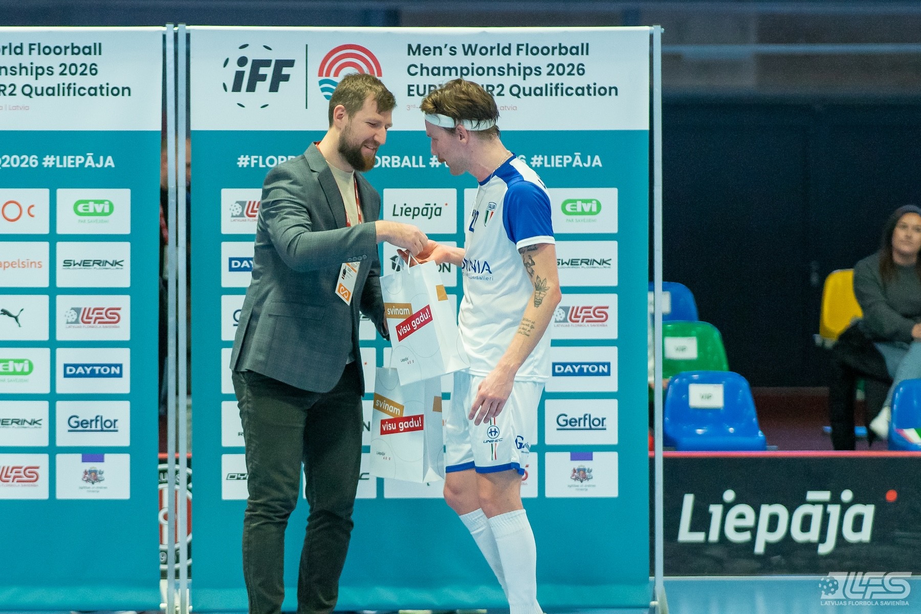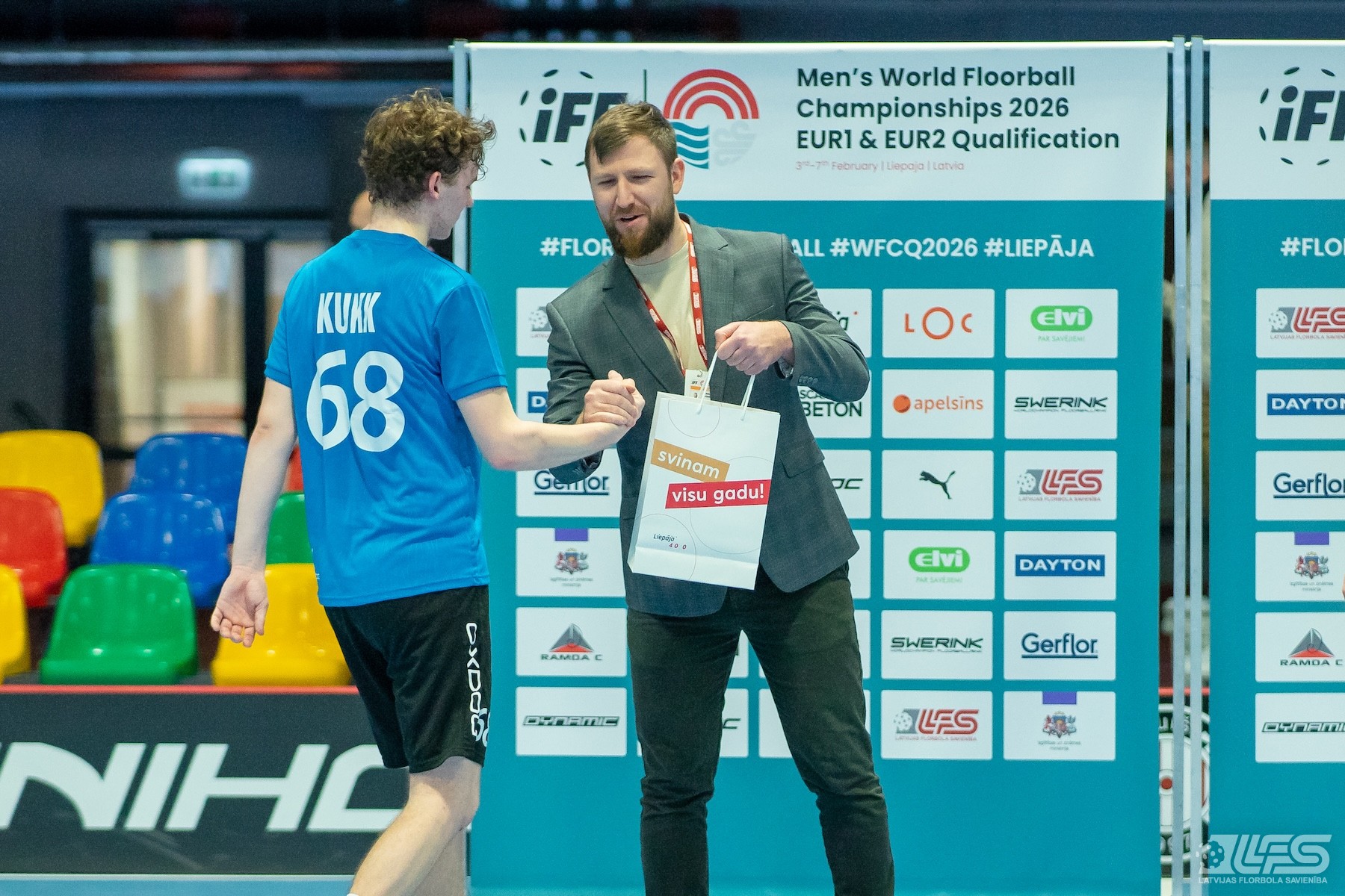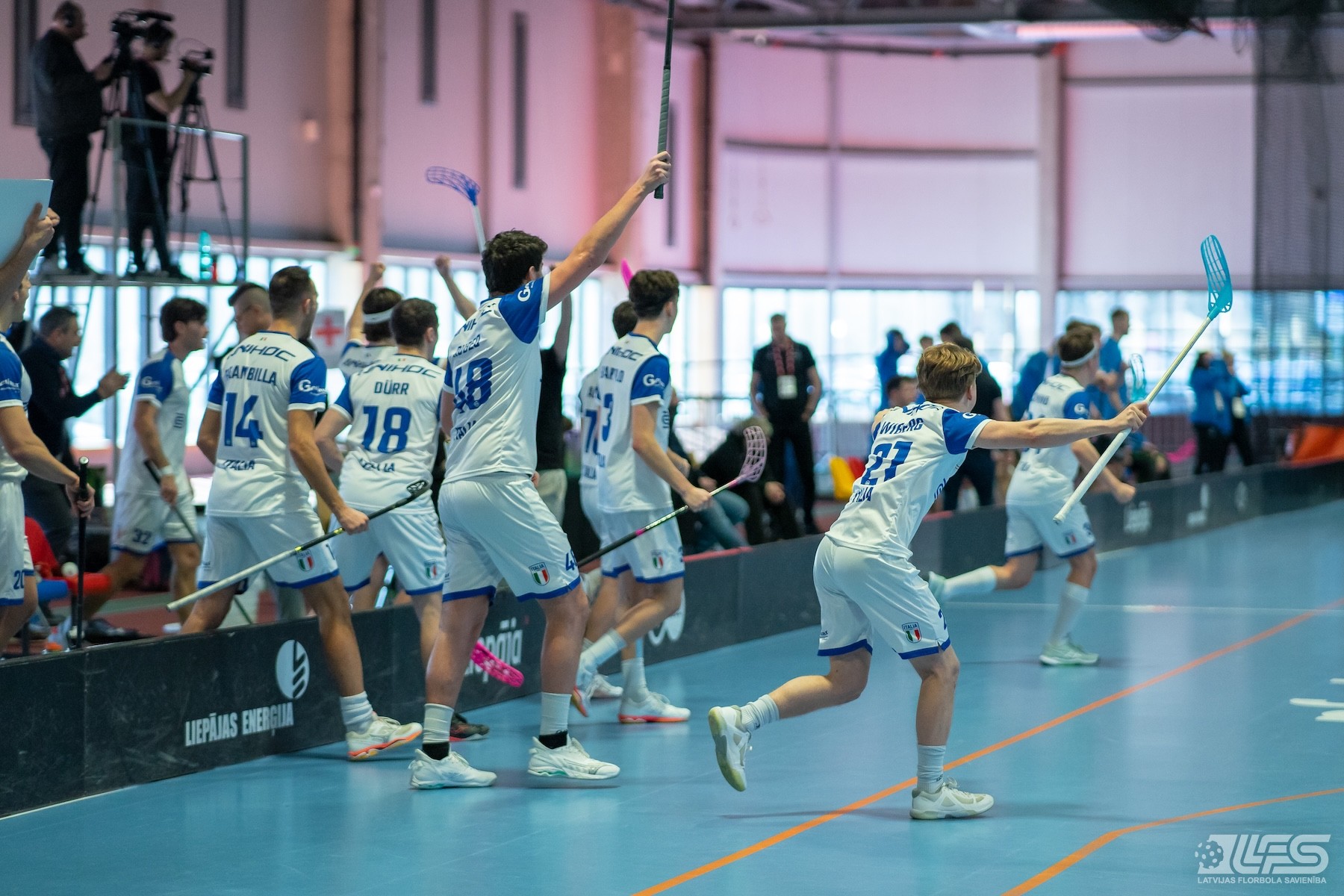 Pirmais pārsteigums fiksēts Liepājas Olimpiskā centra manēžā notiekošajā pasaules čempionāta florbolā vīriešiem EUR 2 kvalifikācijas turnīrā, kur neizšķirti nospēlēja igauņi un itāļi. Itālijas valstsvienība pēc divām trešdaļām bija iekrājusi pat trīs vārtu handikapu (7:4) tomēr ziemeļnieki spēja deficītu likvidēt un paši izvirzīties vadībā (8:7). Skanot finālsvilpei tika slēgts mierizlīgums - 9:9. Igaunijas izlases sastāvā Karls Ēriks Kuks izcēlās ar 5 (2+3) rezultativitātes punktiem, bet Itālijai 4 (2+2) punkti Džovanni Palumbo kontā.