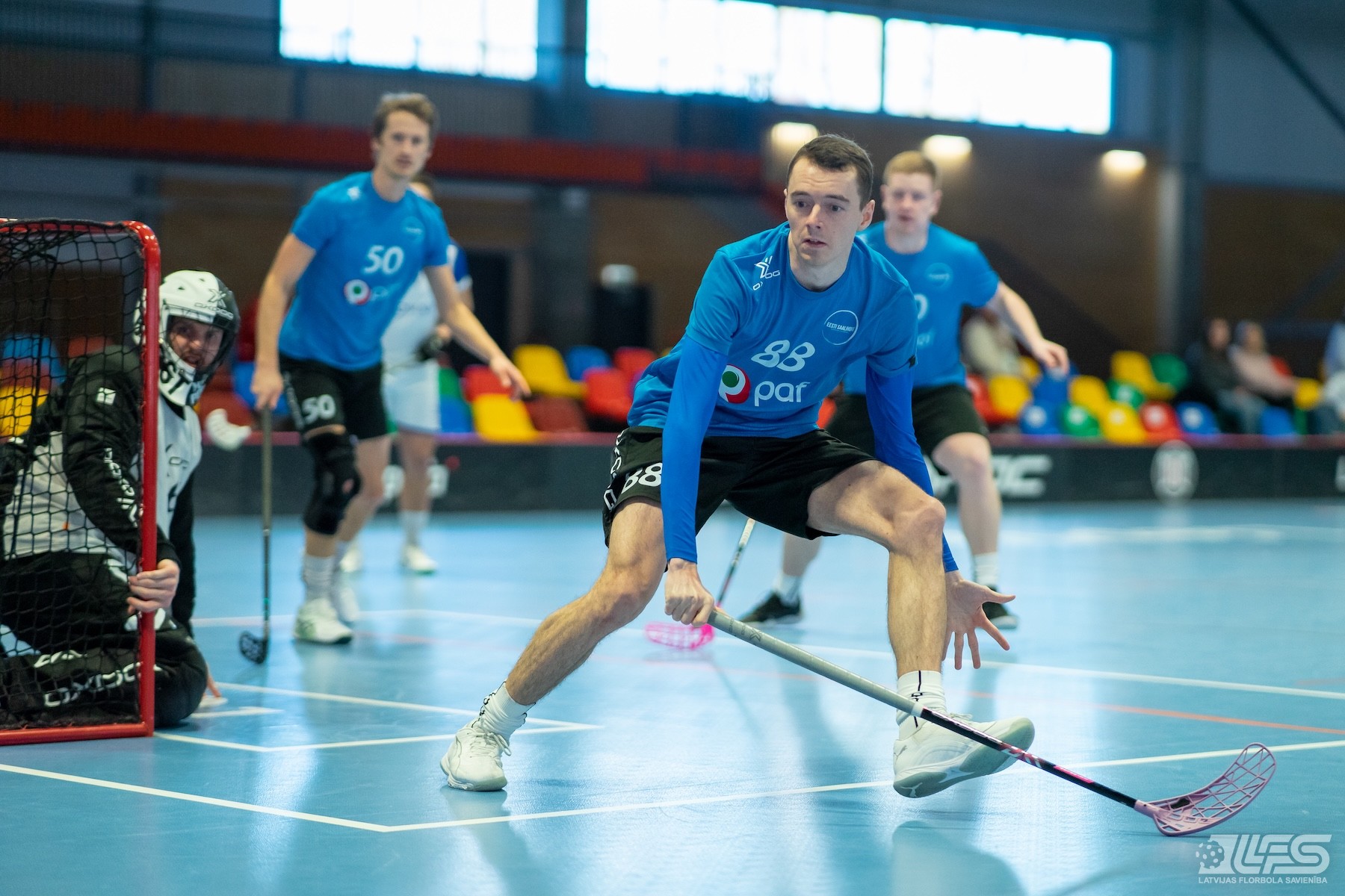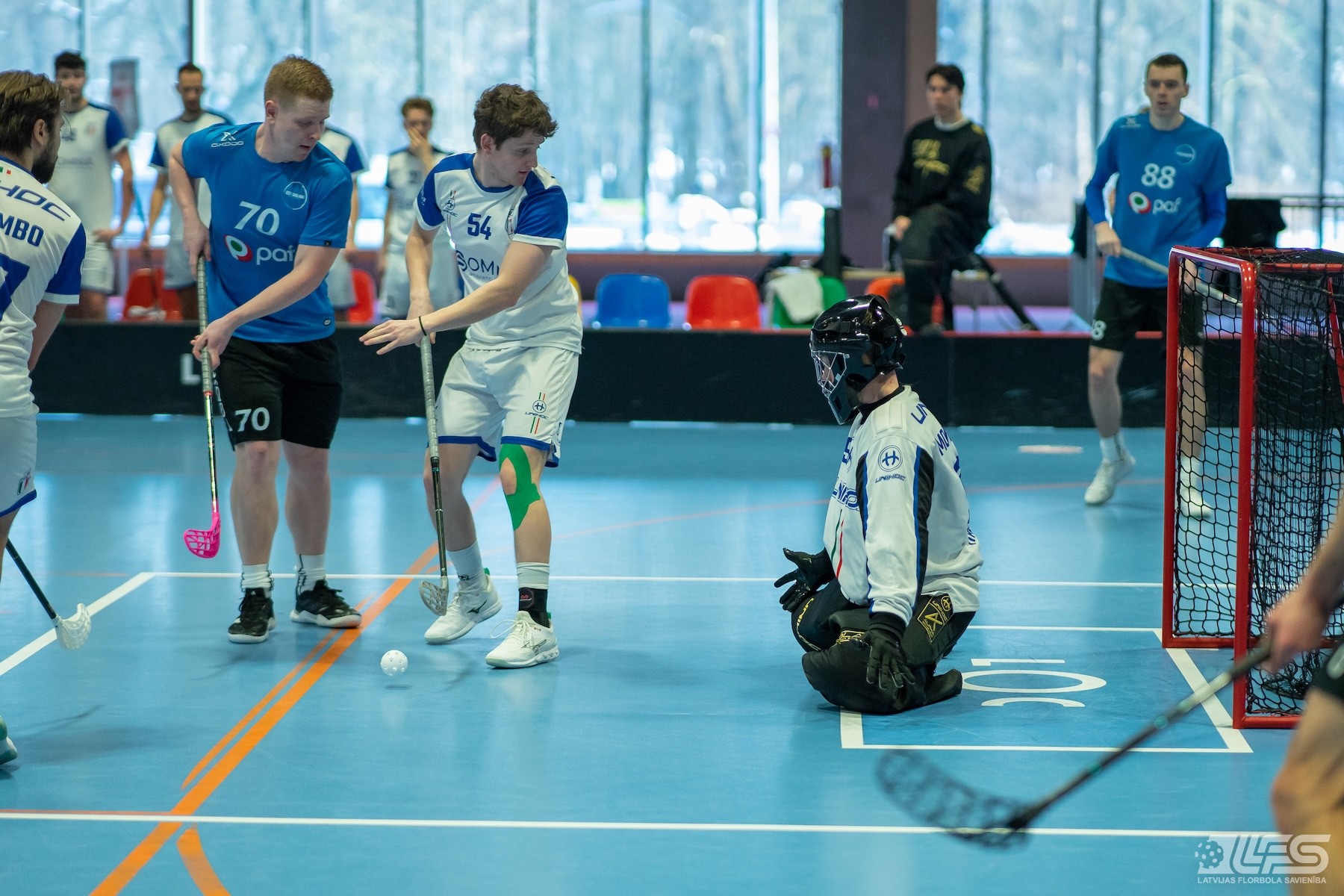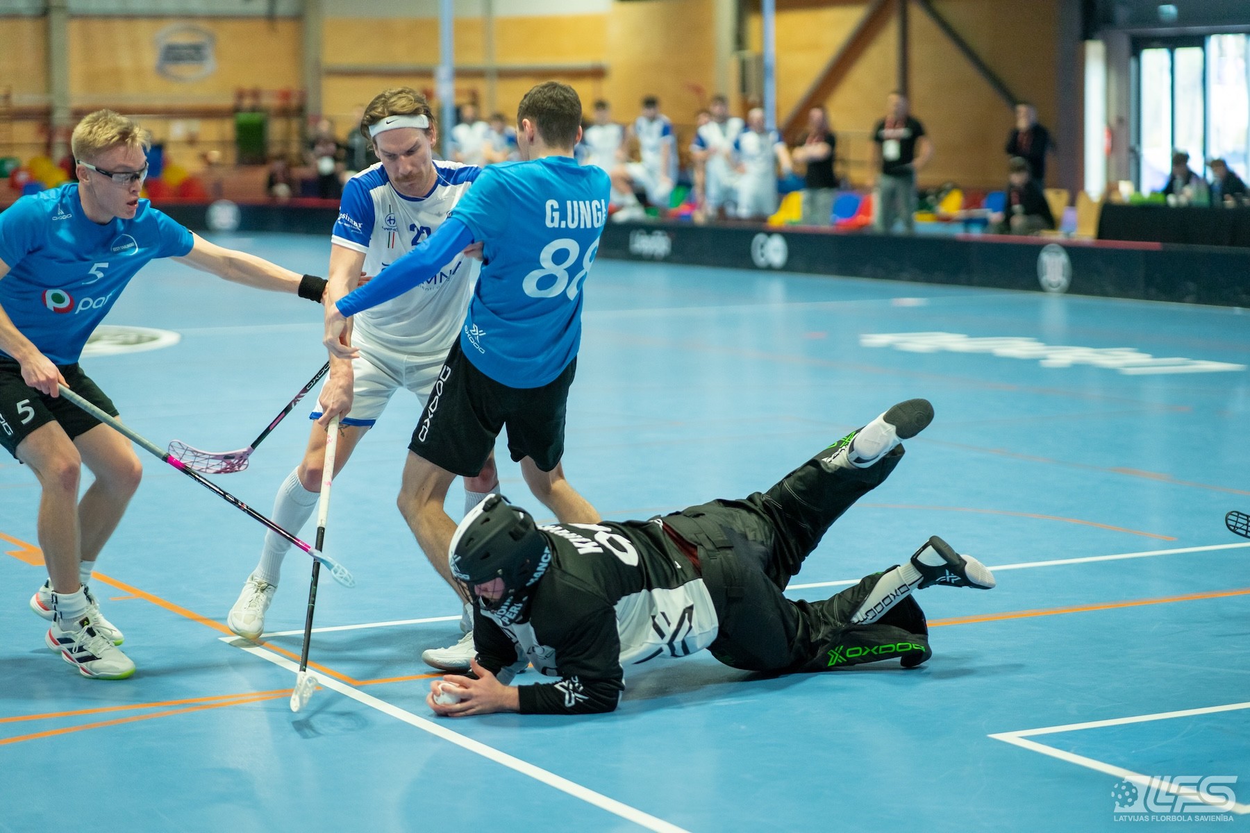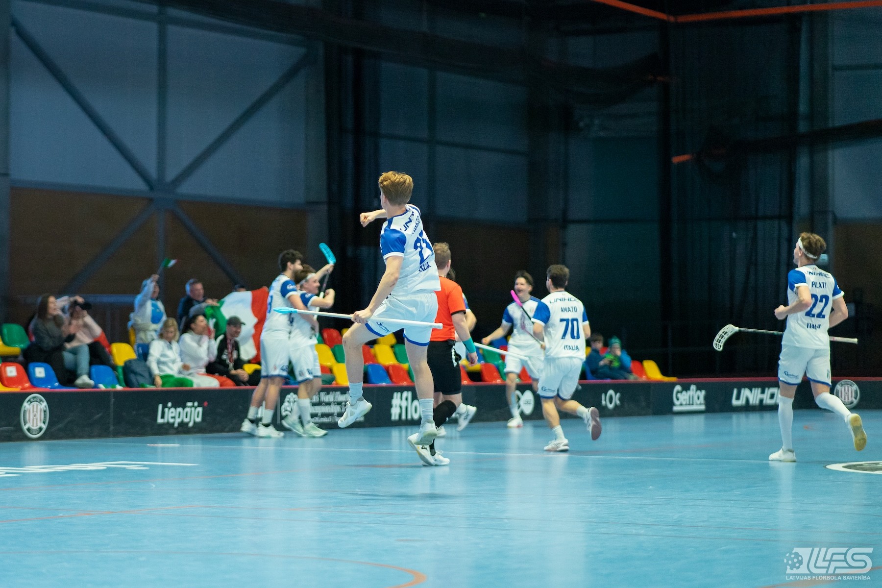 Pirmais pārsteigums fiksēts Liepājas Olimpiskā centra manēžā notiekošajā pasaules čempionāta florbolā vīriešiem EUR 2 kvalifikācijas turnīrā, kur neizšķirti nospēlēja igauņi un itāļi. Itālijas valstsvienība pēc divām trešdaļām bija iekrājusi pat trīs vārtu handikapu (7:4) tomēr ziemeļnieki spēja deficītu likvidēt un paši izvirzīties vadībā (8:7). Skanot finālsvilpei tika slēgts mierizlīgums - 9:9. Igaunijas izlases sastāvā Karls Ēriks Kuks izcēlās ar 5 (2+3) rezultativitātes punktiem, bet Itālijai 4 (2+2) punkti Džovanni Palumbo kontā.
